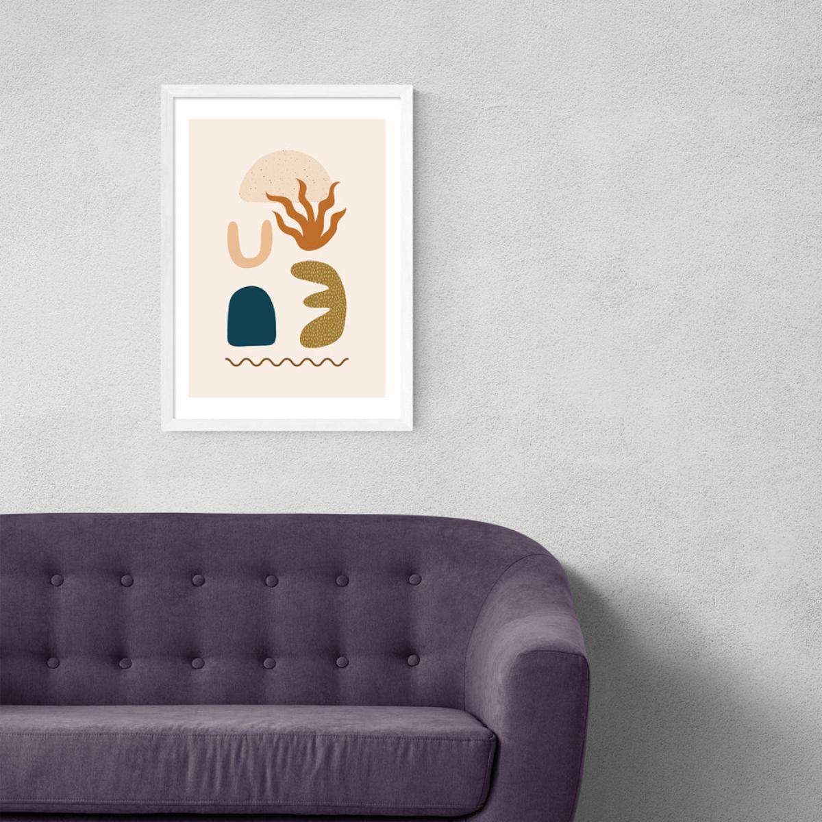 A calming abstract geometric print on a neutral ground by Sundry Society. Additional Information: White Obeche Wood Frame A3 Sized Print Giclee printing process lasting up to 70 years from fading 210gsm acid free archival paper with a digital white border For every print sold a percentage of profit is donated to Cool Earth, a charity combating deforestation in the rainforest Dimensions: H: 51 x W: 39 x D: 7 cm Materials: Solid obeche wood frame, acrylic glaze and 210gsm acid-free archival paper Assembly Required: No Care Instructions:Wipe clean with a soft dry cloth