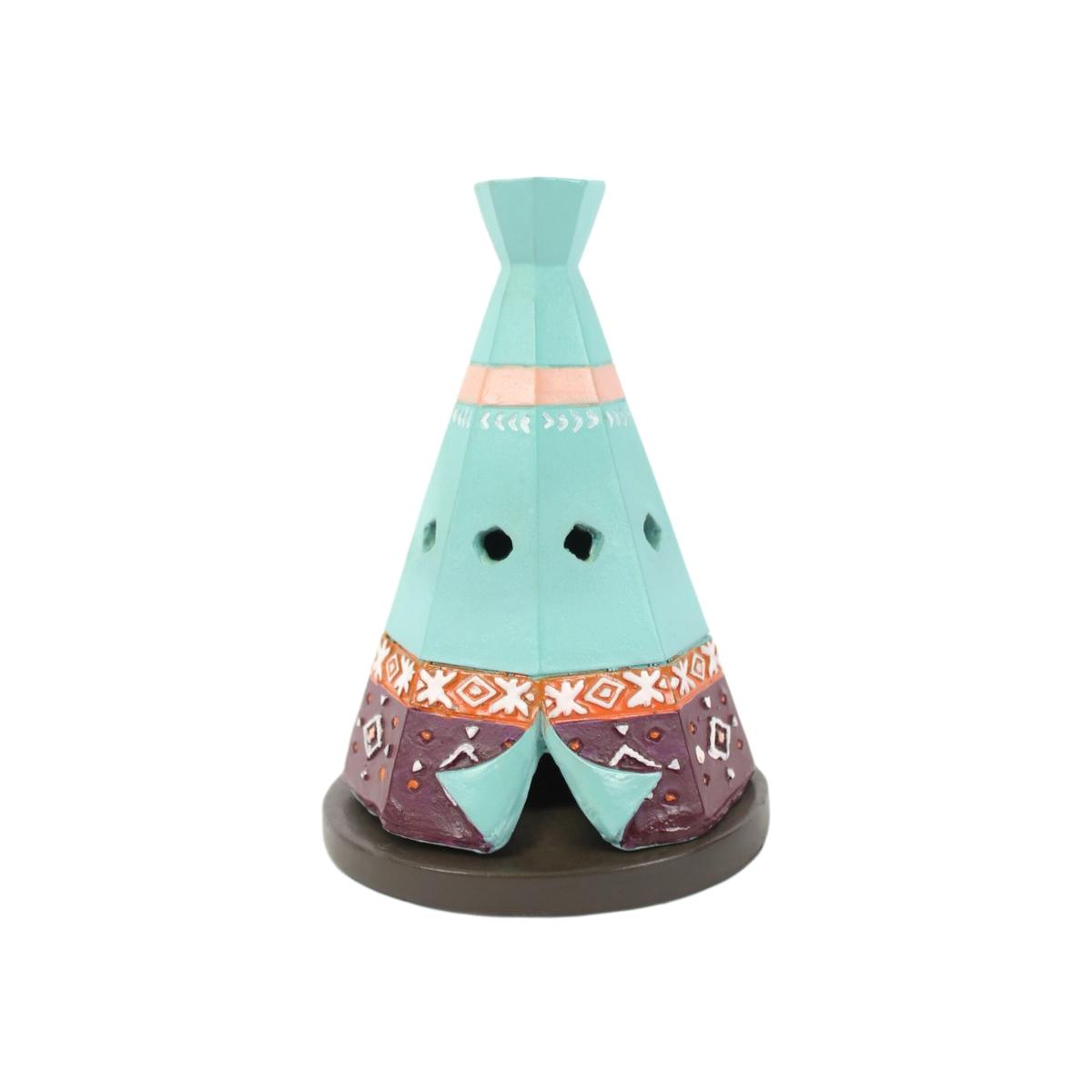 I love this teepee incense holder for its playful yet bohemian charm, making it a versatile accessory in various interiors. Its vibrant turquoise and patterned design work beautifully in eclectic, boho, or coastal styled spaces, adding colour and interest without overwhelming the room. For styling tips, place it on a shelf alongside plants, candles, or other natural textures to create a relaxed, inviting atmosphere. It works well as a focal piece on a sideboard or coffee table, and pairing it with neutral or earthy tones can make its colours pop even more. Practicality-wise, it keeps incense cones secure and helps keep the space smelling fresh, making it both decorative and functional.