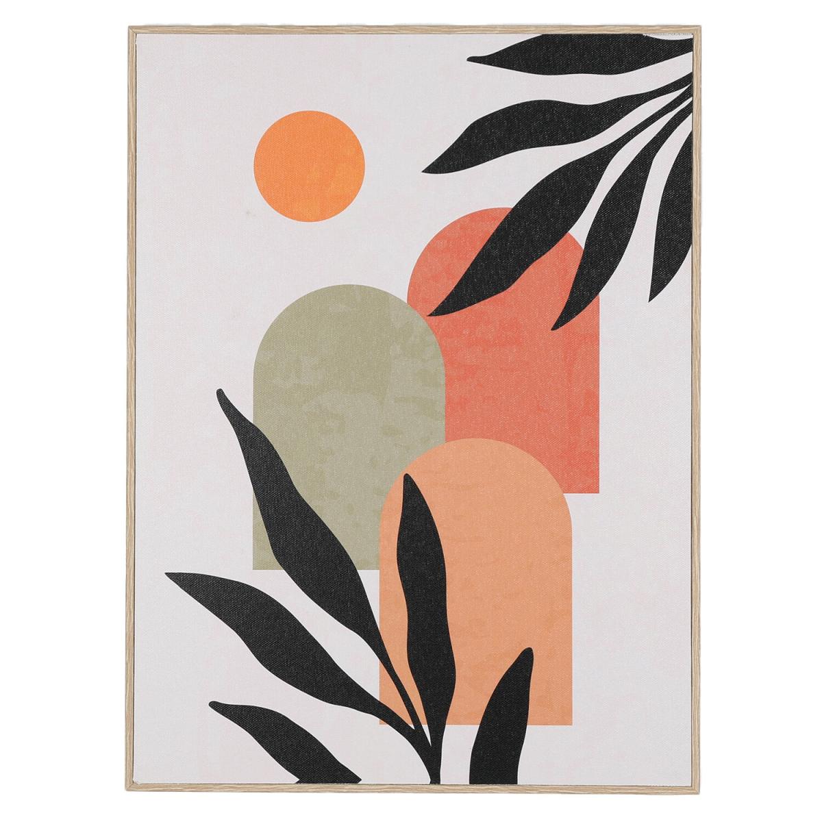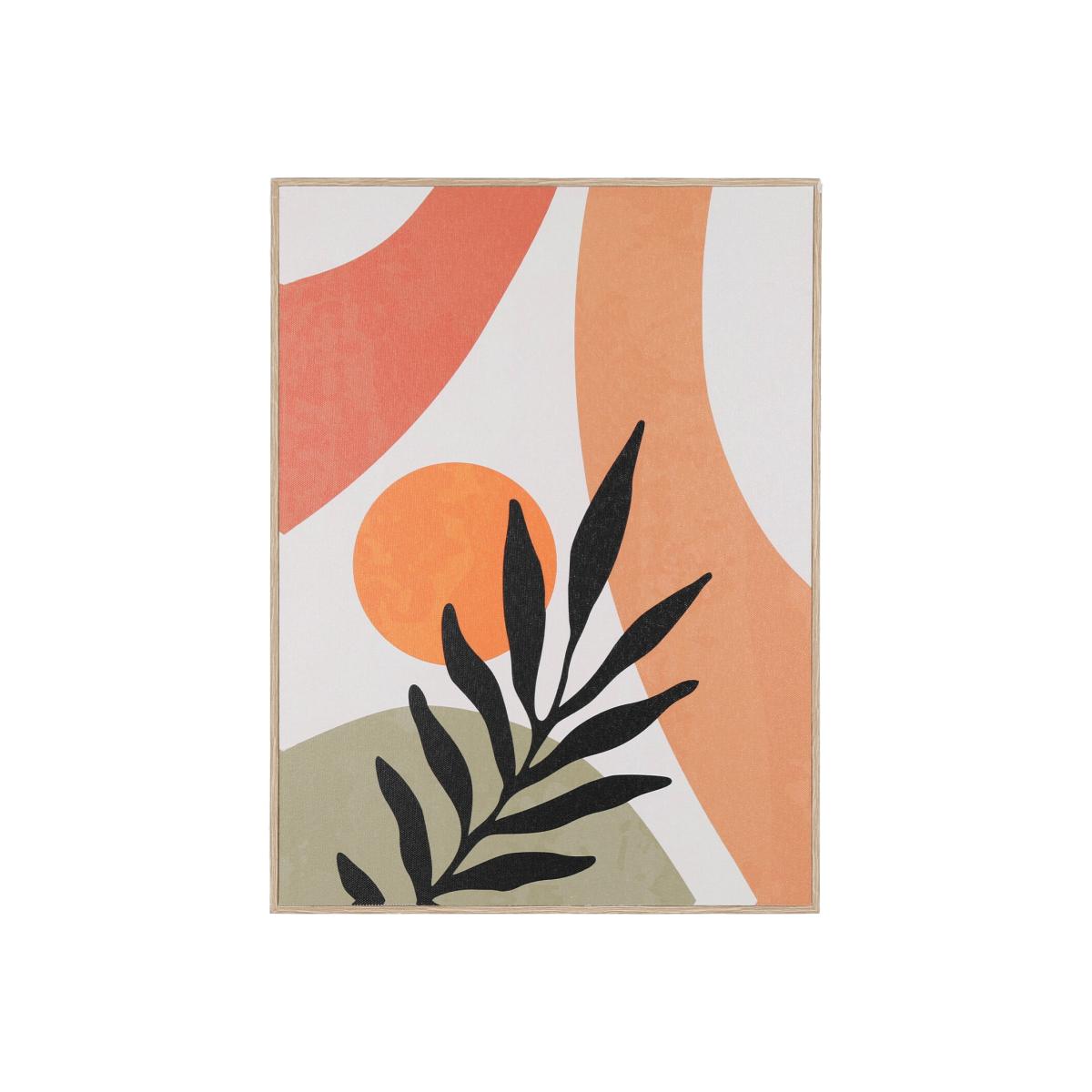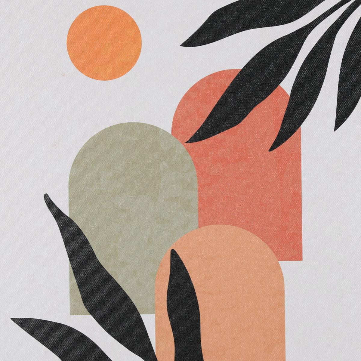 Bring a touch of sunshine to your home by hanging this beautiful Boho Terracotta Abstract Canvas. The canvas is available in two designs, each with abstract terracotta shapes accented with green, leaves, and orange spots inspired by the sun. The canvas has a natural wooden frame to complement the art, and it's quick and easy to hang via the metal hook on the back.
