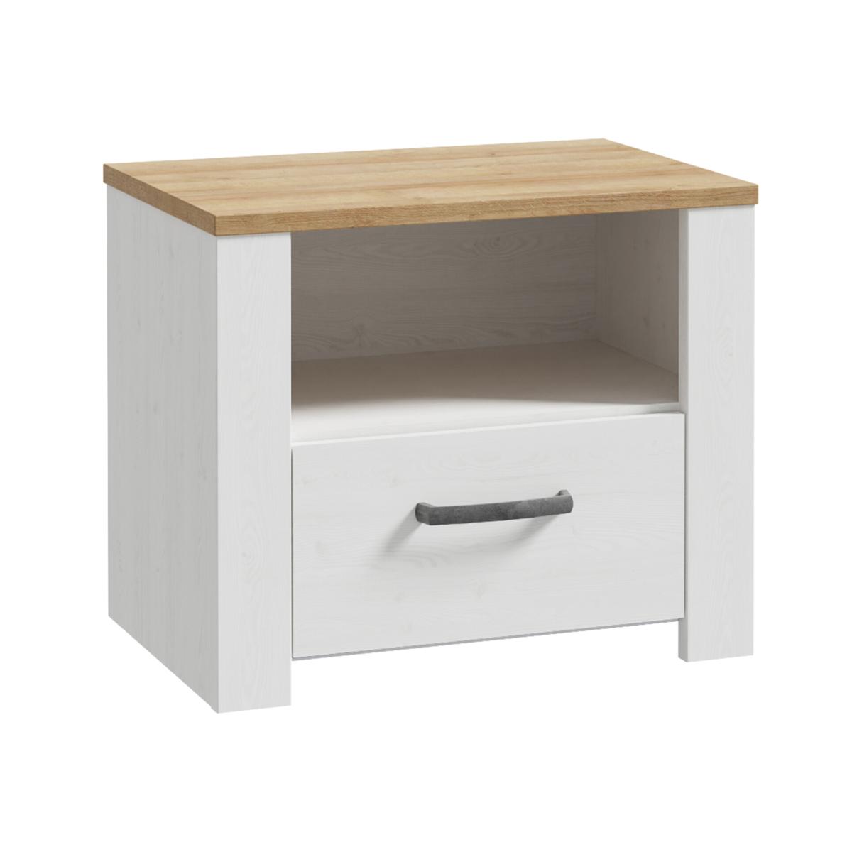 Add elegance to your bedroom with this Bohol Bedside Table. Featuring a display shelf, it allows you to add decor to your space, while the drawer offers a discreet space for other essentials. This bedside table blends style and functionality, elevating your decor effortlessly. Finished with a flat oak top, it lets you keep a lamp, books, or display your favourite photograph. Its enchanting design and damage-resistant ABS edging make it a stylish and durable storage solution. Pair it with matching furniture items in the Bohol collection to create a cohesive look.