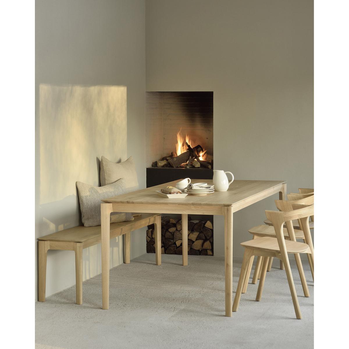 For twenty-five years, Belgian brand Ethnicraft has paid tribute to the beauty and authenticity of solid wood. Timeless, extremely strong and durable, these are quality pieces of furniture that age wonderfully and are passed down from generation to generation. Handcrafted, Ethnicraft furniture is the result of exceptional know-how. Behind the apparent simplicity of the design hides a constant search for innovation. Integrating advanced techniques into the creative process, each new design is worked out down to the smallest detail. Entirely made of solid oak, the Bok table has a warm, authentic look. Its clear, refined design makes it a modern, timeless piece capable of blending into any decor style without ever becoming boring. The finishes are perfect and extremely neat. The top with its bevelled edges is slightly raised at the legs, which brings lightness to the silhouette. With its slightly tapered legs, the Bok table is airy, delicate yet extremely robust. It brings its natural charm to your interior. The Bok bench goes perfectly with the Bok dining table or any other table. It can also be used as a stand-alone unit against a wall, in a hallway or at the end of a bed.