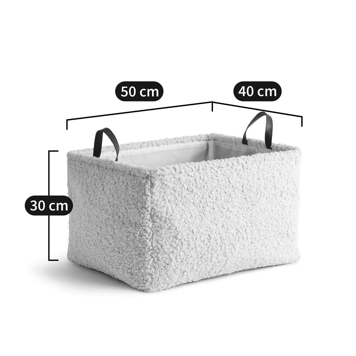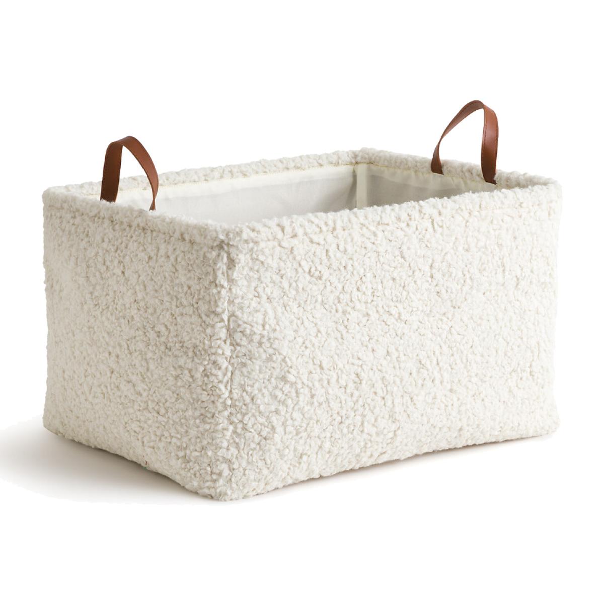 Soft and practical. The Boklio terry-finish storage basket adds a touch of softness to your room. Perfect for storing your laundry, clothes or storing everyday accessories. Product Details • Outer cover 100% polyester, terry finish • 100% polyester plain non-woven interior • EVA Structure • 2 polyurethane handles. Care instructions • Clean with a dry cloth only. Dimensions • Length: 50cm • Width: 40cm • Height: 30cm