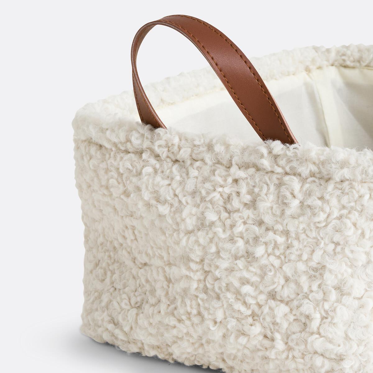 Soft and practical. The Boklio terry-finish storage basket adds a touch of softness to your room. Perfect for storing your laundry, clothes or storing everyday accessories. Product Details • Outer cover 100% polyester, terry finish • 100% polyester plain non-woven interior • EVA Structure • 2 polyurethane handles. Care instructions • Clean with a dry cloth only. Dimensions • Length: 50cm • Width: 40cm • Height: 30cm