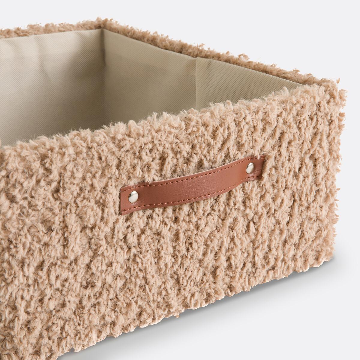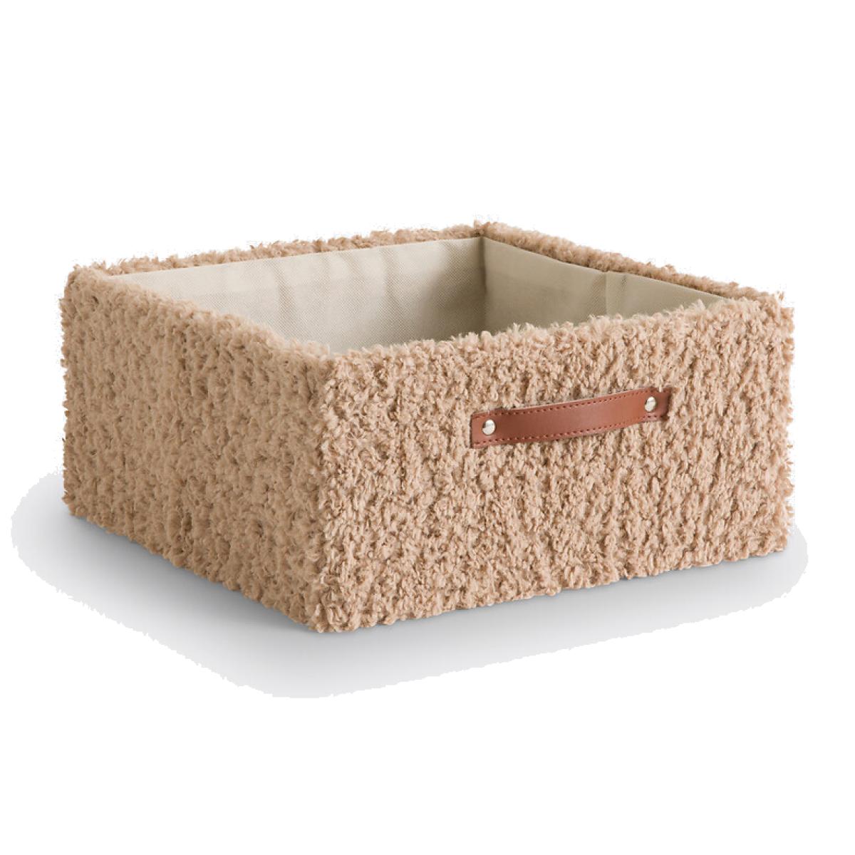 Soft, functional and foldable. The Boklio terry-finish storage basket adds a touch of softness to your room. Perfect for storing your linens or storing children's toys. Product Details • Outer cover 100% polyester, terry finish • 100% polyester plain non-woven interior • Cardboard structure • 1 polyurethane carrying handle. Care instructions • Clean with a dry cloth only. Dimensions • Length: 31cm • Width: 31cm • Height: 15cm