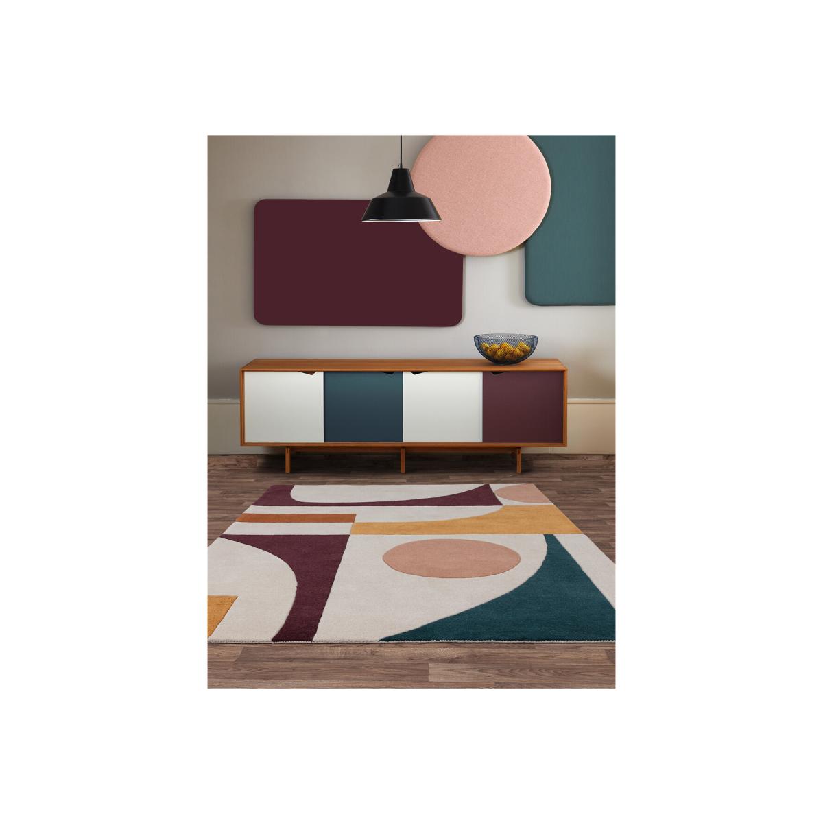 I love this rug because its bold, abstract shapes bring a contemporary edge to any space. The 100% wool construction makes it durable and soft underfoot, ideal for living rooms or even bedrooms that need a focal point. It works particularly well in modern or minimalist interiors, where its playful design can really stand out, but it can also add a dash of colour to more neutral schemes. For styling, try pairing it with furniture in solid, muted tones to let the pattern do the talking, or mix with other geometric accessories for a coordinated look. Placing it under a dining table or in a sitting area helps to anchor the space beautifully.