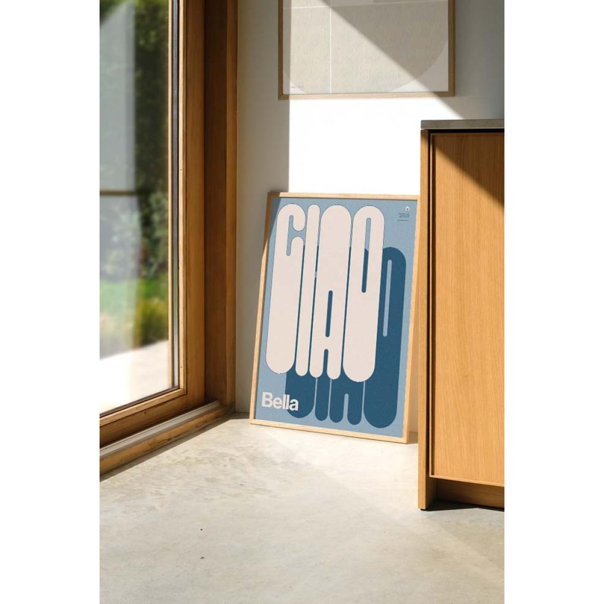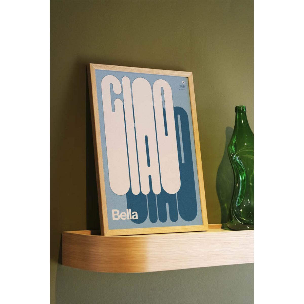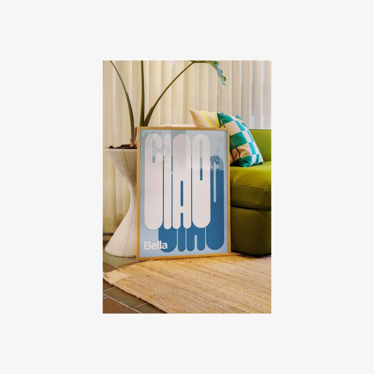 <!--td --> We love a work of art that stops to make you think, which is what this piece does this brilliantly. The juxtaposition of the different styles of typography ('70s soft and squashy font versus Bauhaus minimalism) makes for a striking combination, especially with the shadow detailing. The muted colours – off-white against duck egg and petrol blue – allow this to work against neutral, muted tones, but fit right into a more maximalist environment, too, for a fabulous layering of colour that adds personality and character to a room. ‘Ciao Bella’ - or ‘Hello, Beautiful’ - is a romantic sentiment that gets us every time (Team RSG are hopeless romantics), and earns pride of place in our homes, no questions asked! Hang in the hallway or bedroom, or display loud and proud on a kitchen sideboard or shelf. Quirky, eclectic and right up our street. LOVE.- Bold Ciao Bella Art Print - Unframed - Measures: H70cm x W50cm - Material: Digitally printed on 250gsm luxurious museum-quality paper- Please note this piece is unframed