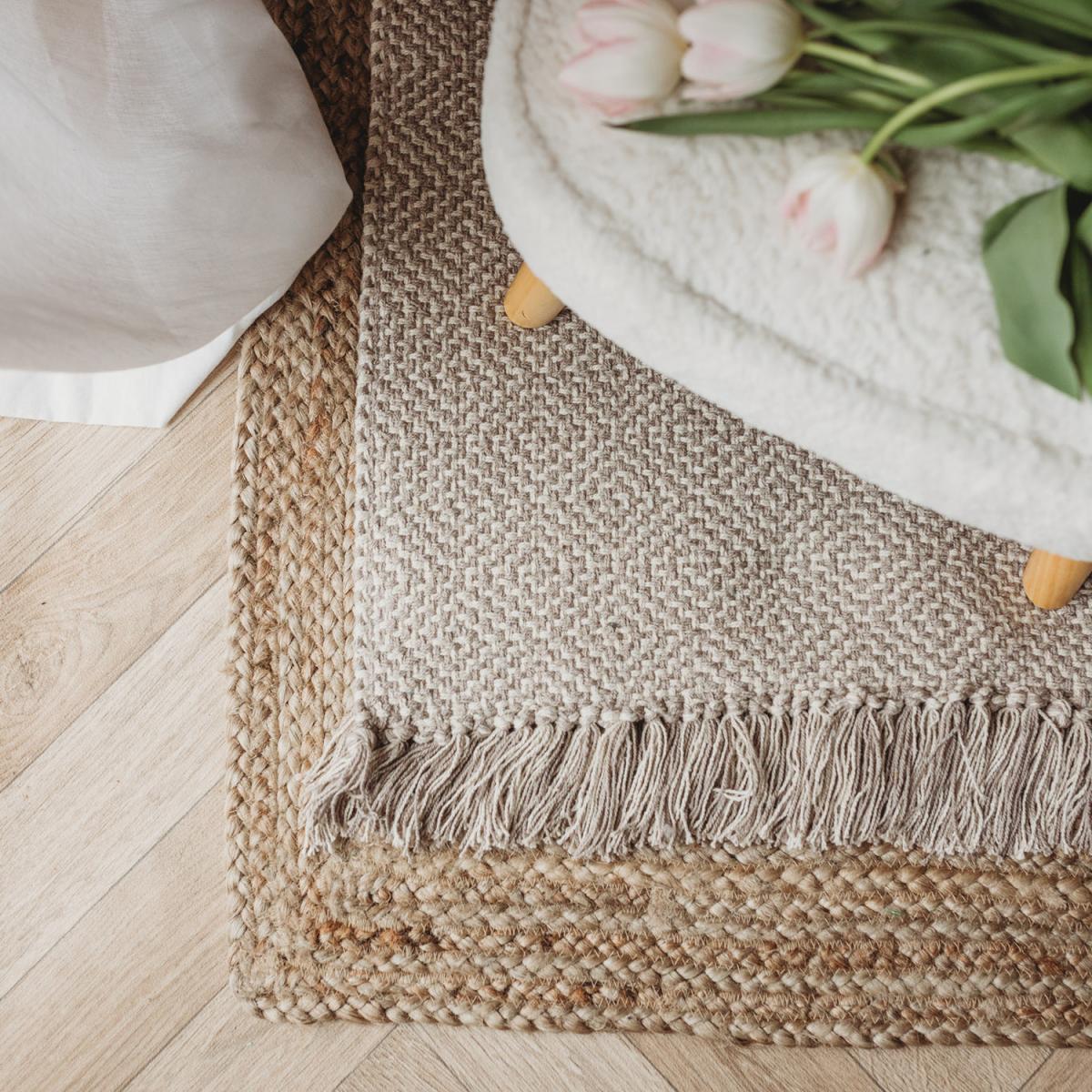 I love this bold geometric handwoven rug for its versatile taupe palette and textured pattern, which add visual interest without overpowering a space. It works particularly well in contemporary and modern interiors, providing a sophisticated backdrop that’s easy to style with various colour schemes. Practical tips include pairing it with neutral furniture to let the pattern stand out or using it to anchor a living room or bedroom setup. Since it’s handwoven, it offers a crafted, tactile quality that adds warmth and depth, making it a great choice for adding subtle pattern and texture to both minimalist and layered interiors.
