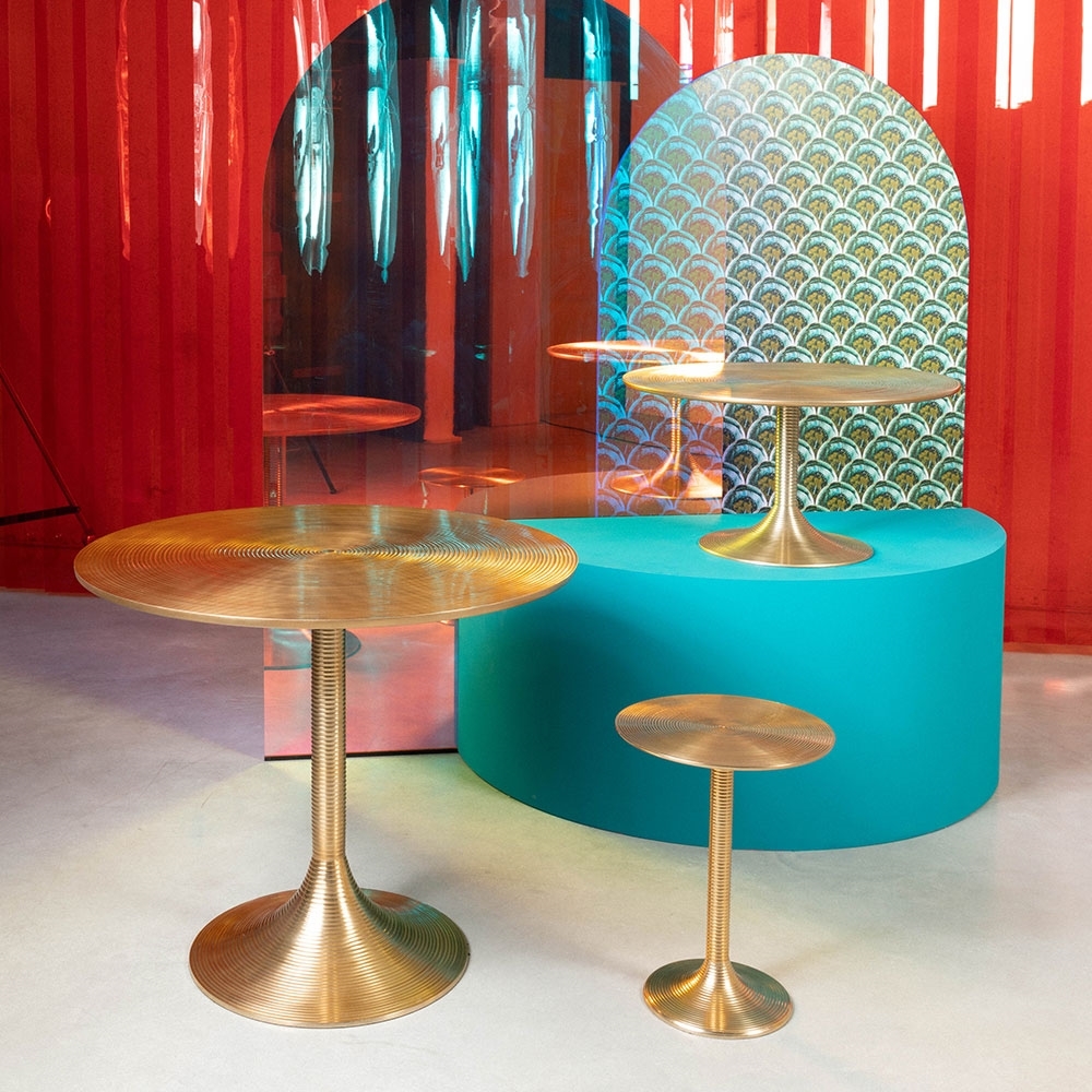 Mesmerise your guests with the Hypnotising Round Dining Table from Bold Monkey, even if the food is well, less than desirable (hey, not everyone can be a master chef!), no one will notice when gathered around this beauty. Finished in either a gorgeous gold or sleek black, this art-deco inspired table is sure to make a statement in your dining room. With a stunning textured look and stylish trumpet base it will be a beautiful addition to those dinner parties, you won't want to hide this eye-catching piece under a tablecloth. Also available as side table and coffee table - why not create a coordinating look?.