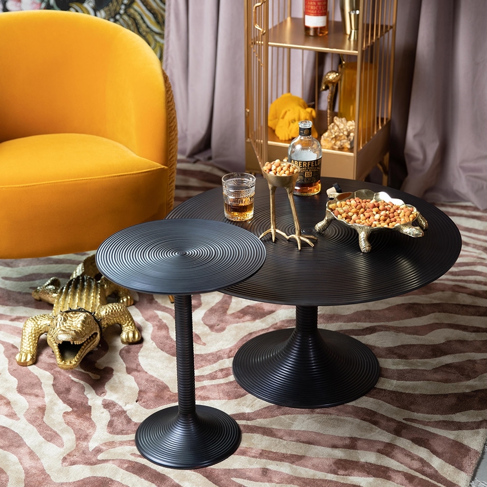 Appropriately named, the Hypnotising Round Side Table from Bold Monkey is a table you can't keep your eyes off. Finished in either a gorgeous gold or sleek black, this little table will be the perfect spot to pop your cuppa down. With a stunning textured look and stylish trumpet base, this isn't a table to hide in a corner but should stand pride of place wherever you keep it. So just look into my eyes, look into my eyes, the eyes, the eyes, not around the eyes, don't look around my eyes, look into my eyes, you're under. You know you want this table. Three, two, one...You're back in the room.