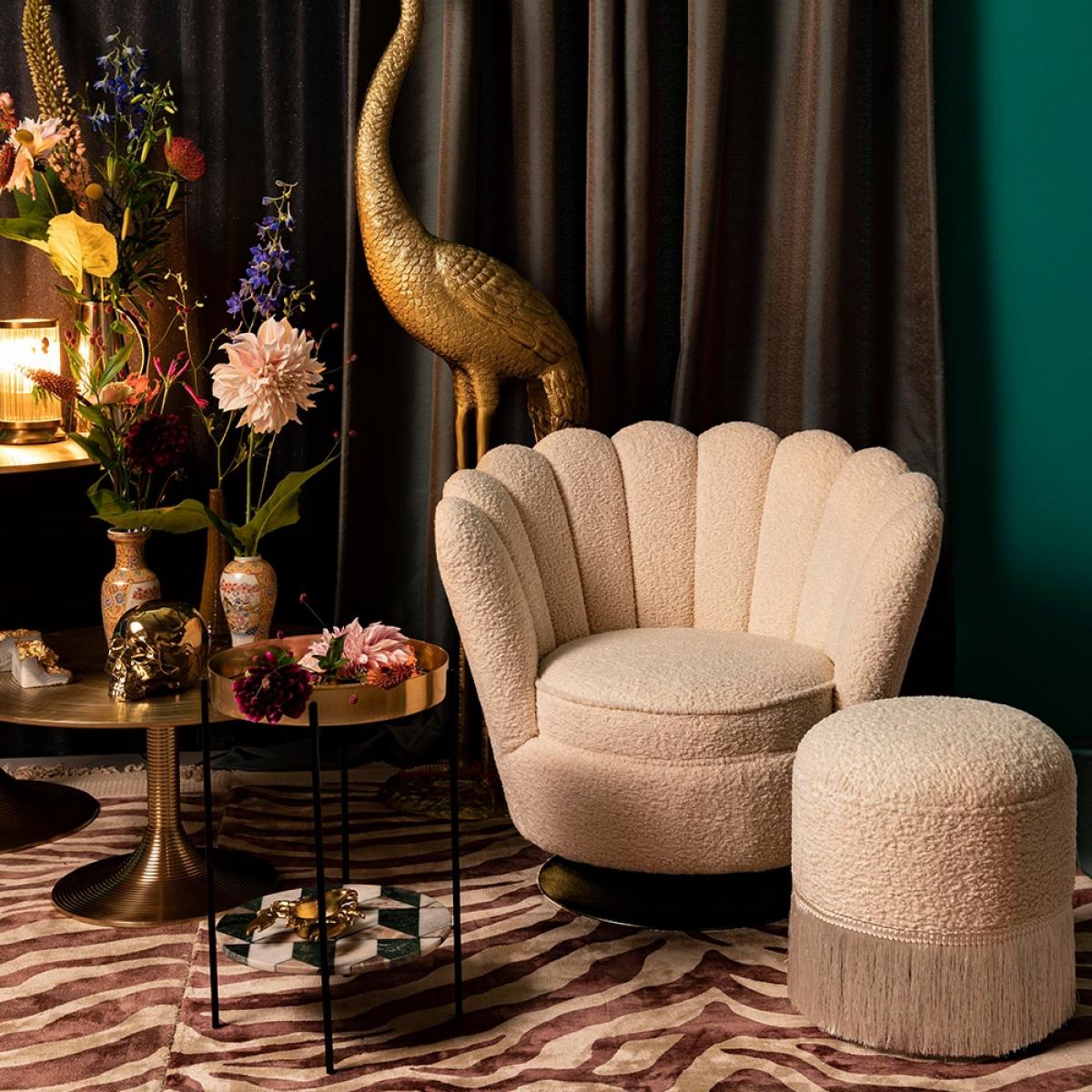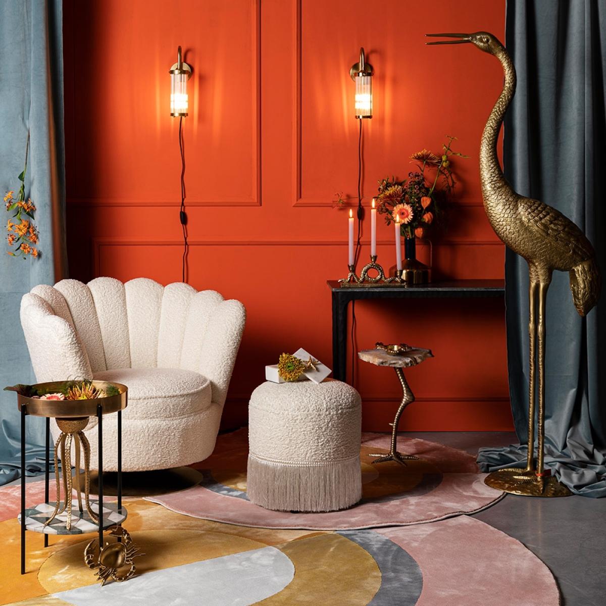 I love this shell-inspired lounge chair for its bold and playful design, which instantly adds personality to any space. It works particularly well in eclectic, bohemian, or contemporary interiors where statement pieces are desired. To style it effectively, pair it with neutral-toned furniture to let the chair stand out, and use coordinating textures or colour accents for a cohesive look. Practical tips include placing it in a corner to create a cosy reading nook or using it as a focal point in a living room to showcase its unique silhouette. The accompanying ottoman also offers versatile functionality, making it a practical yet stylish choice.