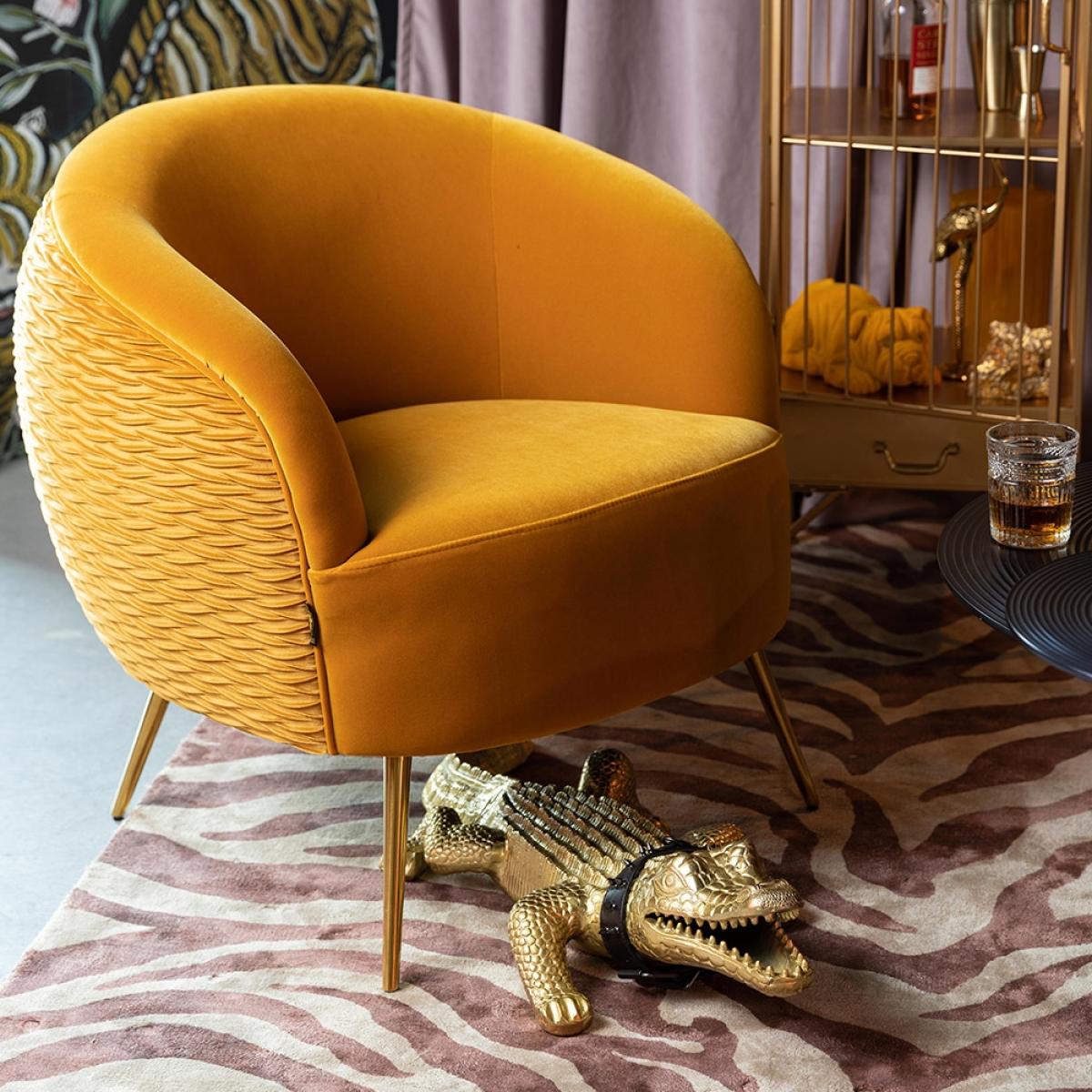 Everyone loves a bit of curves, especially when talking about the So Curvy Lounge Chair from Bold Monkey. Beautiful velvet upholstery, slender brass legs and textured detail, what's not to love about this chair, it ticks all the boxes! Infact you may want to sit facing away from everyone simply so they can enjoy the back of this chair. It deserves to be seen! Available in a range of gorgeous deep tones, this chair is sure to be a striking addition although it may be hard to pick just one!.