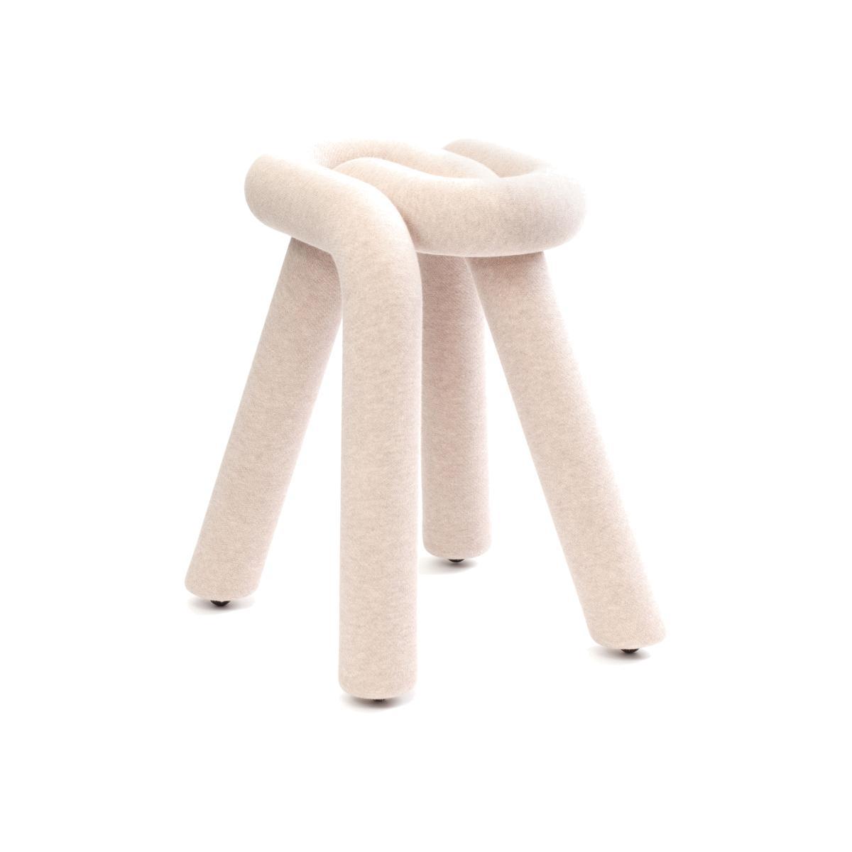 Fun and ultra-graphic, the Bold stool won’t go unnoticed! It consists of two identical tubular parts nested one inside the other. Padded with a thick polyurethane foam, the line drawn by the Bold plays successively the part of foot then seat. In a single line, just like Osvaldo Cavandoli's Linea, and thickened like a character font that’s been fattened up. A style both full of fantasy yet refined. All things superfluous have been eliminated to keep only what is essential. Bold is part of the ''Plus is more'' collection from the Belgian-Swiss Big Game collective. A collection that hijacks with humour the minimalist motto ''less is more'', so dear to architect Mies Van der Rohe. The purpose of this collection is to transform basic elements to bring a "plus" while preserving the integrity of the original element. For the Bold stool, the Big Game studio takes its inspiration from the tradition of the steel-tube chair. The tubular metal structure usually used for the base of a chair is thickened out using a foam padding effect. Thus transformed, the ''inflated'' steel tube manages to save a seat! The stool is covered with a removable, washable fabric cover. Public Collections and Awards: The MoMA, Museum of Modern Art, New York. Musée des Arts Décoratifs, Paris. Museum für Gestaltung, Zurich. F. N. A. C. National Collection of Contemporary Art, Paris La Défense.