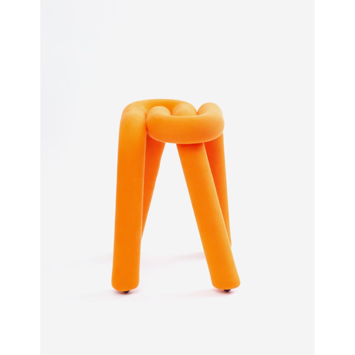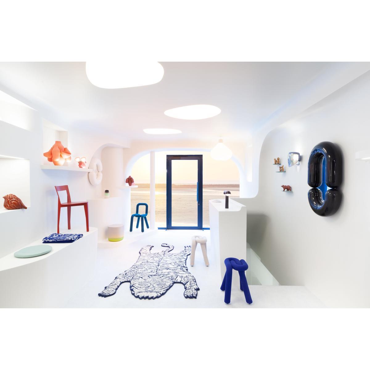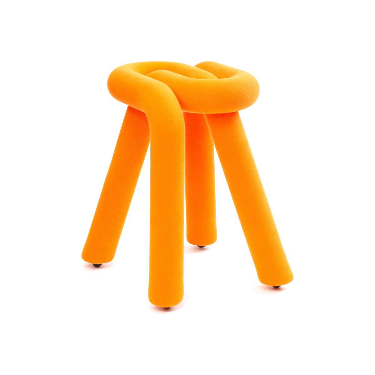 Fun and ultra-graphic, the Bold stool won’t go unnoticed! It consists of two identical tubular parts nested one inside the other. Padded with a thick polyurethane foam, the line drawn by the Bold plays successively the part of foot then seat. In a single line, just like Osvaldo Cavandoli's Linea, and thickened like a character font that’s been fattened up. A style both full of fantasy yet refined. All things superfluous have been eliminated to keep only what is essential. Bold is part of the ''Plus is more'' collection from the Belgian-Swiss Big Game collective. A collection that hijacks with humour the minimalist motto ''less is more'', so dear to architect Mies Van der Rohe. The purpose of this collection is to transform basic elements to bring a "plus" while preserving the integrity of the original element. For the Bold stool, the Big Game studio takes its inspiration from the tradition of the steel-tube chair. The tubular metal structure usually used for the base of a chair is thickened out using a foam padding effect. Thus transformed, the ''inflated'' steel tube manages to save a seat! The stool is covered with a removable, washable fabric cover. Public Collections and Awards: The MoMA, Museum of Modern Art, New York. Musée des Arts Décoratifs, Paris. Museum für Gestaltung, Zurich. F. N. A. C. National Collection of Contemporary Art, Paris La Défense.