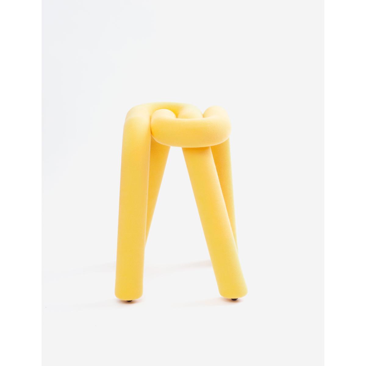 Fun and ultra-graphic, the Bold stool won’t go unnoticed! It consists of two identical tubular parts nested one inside the other. Padded with a thick polyurethane foam, the line drawn by the Bold plays successively the part of foot then seat. In a single line, just like Osvaldo Cavandoli's Linea, and thickened like a character font that’s been fattened up. A style both full of fantasy yet refined. All things superfluous have been eliminated to keep only what is essential. Bold is part of the ''Plus is more'' collection from the Belgian-Swiss Big Game collective. A collection that hijacks with humour the minimalist motto ''less is more'', so dear to architect Mies Van der Rohe. The purpose of this collection is to transform basic elements to bring a "plus" while preserving the integrity of the original element. For the Bold stool, the Big Game studio takes its inspiration from the tradition of the steel-tube chair. The tubular metal structure usually used for the base of a chair is thickened out using a foam padding effect. Thus transformed, the ''inflated'' steel tube manages to save a seat! The stool is covered with a removable, washable fabric cover. Public Collections and Awards: The MoMA, Museum of Modern Art, New York. Musée des Arts Décoratifs, Paris. Museum für Gestaltung, Zurich. F. N. A. C. National Collection of Contemporary Art, Paris La Défense.