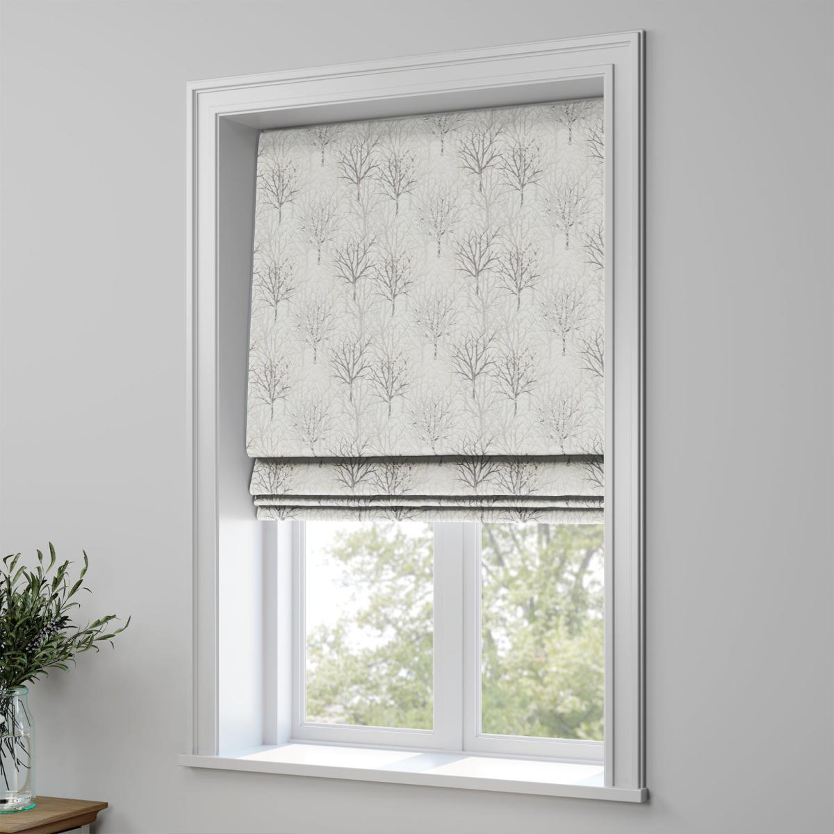 * Choose from 3 linings* Select your fitting type* Pick a side for the operating chain Designed with a stylish woodland theme, the Bolderwood range of Roman Blinds are perfect at welcoming an elegant look into your room.**Choosing your lining:*** Blackout provides minimal light disturbance in your home making it perfect for bedrooms. * Thermal helps to keep the warmth in and the cool air out meaning it’s great for family rooms or lounges. * Our Standard Lining is perfect if you like the glow of natural light whilst your curtains are closed whilst still maintaining your privacy.**Choosing your fitting type:*** Inside the recess: this gives a tidy, snug finish as it’s made to fit your window exactly. * Outside the recess: this option is great if you don’t want the blind to be visible from the outside when it’s drawn up.**Choosing which side you’d like the operating chain:*** Think about where your blind will be situated and what furniture may be near it – choose the side that is easier for you to access.**Need help deciding or measuring?**Book a free appointment with one of our consultants! dunelm. com/category/made-to-measure/book-an-appointment).**Child Safety:**We add clips to the back of our roman blinds to attach the cords to the fabric. They also double up as a child safety feature. If pressure is exerted the clips will detach to prevent the risk of strangulation. Please read our [Blinds Safety Guide](https://www. dunelm. com/info/buying-guides/blinds-safety-guidance) for more information. If the clips detach accidentally during normal use, they can be easily re-clipped back into place. Please note: If your measured width is over 130cm your blinds may come with a fabric join to provide the full width required.
