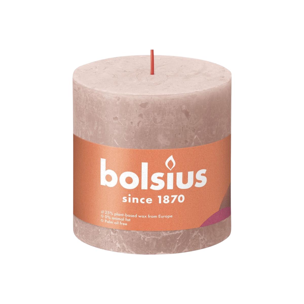 Make every moment a special one! The natural light of candles brings a unique warmth and ambience into your home and makes it cosy. Bolsius's rustic pillar candle coming in the light pink tone Misty Pink boasts a full 10cm in height and burns for a good 30 hours. The mark of a quality candle is its long burning time and its ability to maintain its shape while burning. Bolsius's rustic candle doesn't smoke or drip and has a nice, rustic finish. Made with love for people and planet. With natural, vegan wax from Europe and zero palm oil. The cotton wick is weaved in such a way that your flame remains stable. In that way no black smoke, soot deposits or smoke arises whilst burning. The light pink pastel colour fetches its inspiration from nature. This fresh and powdery pink will add a soft touch to your interiors