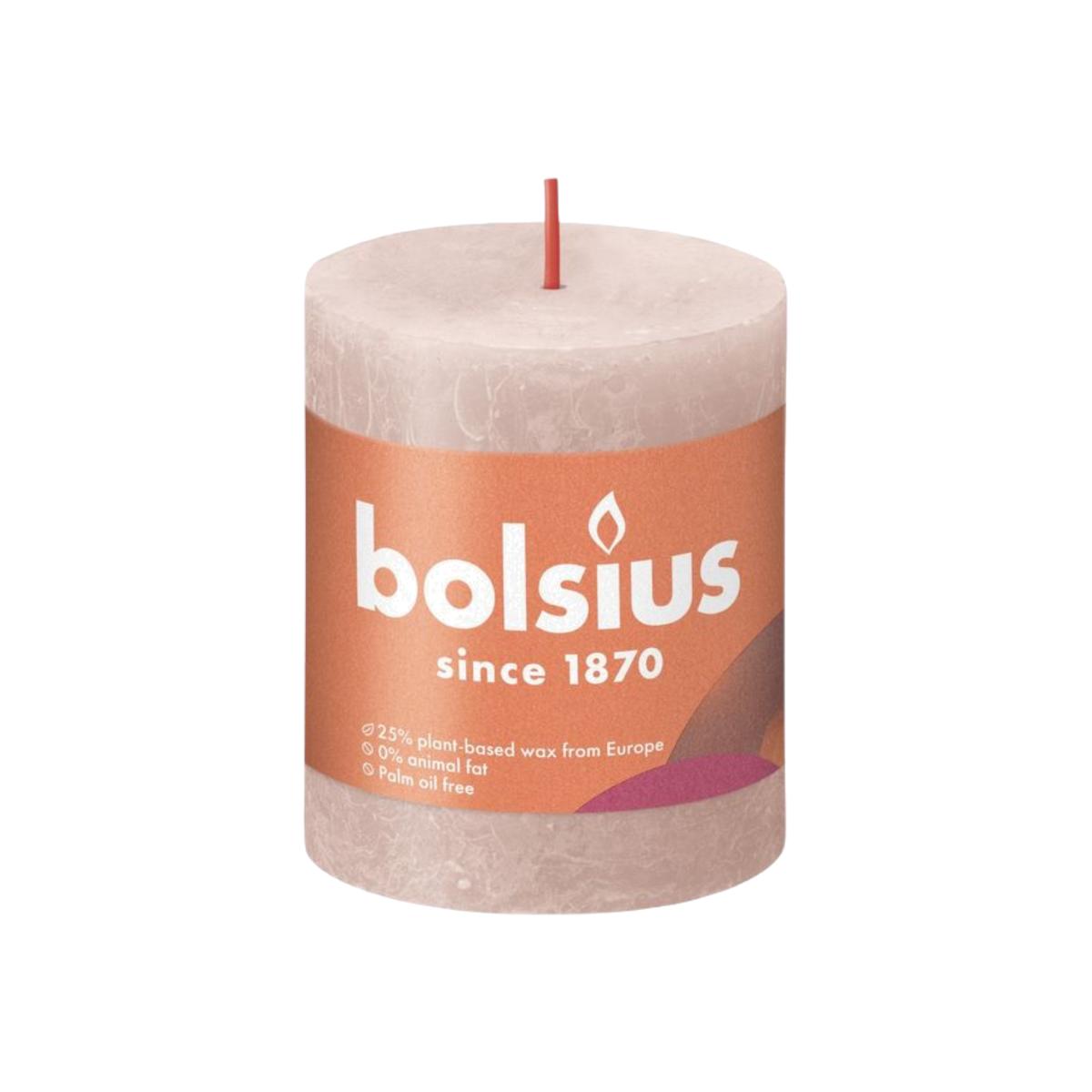 Make every moment a special one! The natural light of candles brings a unique warmth and ambience into your home and makes it cosy. Bolsius's rustic pillar candle coming in the orange-pink tone Rusty Pink and burns for a good 35 hours. The mark of a quality candle is its long burning time and its ability to maintain its shape while burning. Bolsius's rustic candle doesn't smoke or drip and has a nice, rustic finish. Made with love for people and planet. With natural, vegan wax from Europe and zero palm oil. The cotton wick is weaved in such a way that your flame remains stable. In that way no black smoke, soot deposits or smoke arises whilst burning.