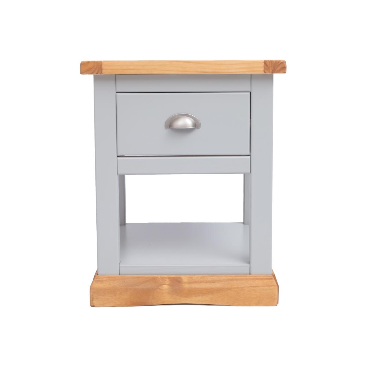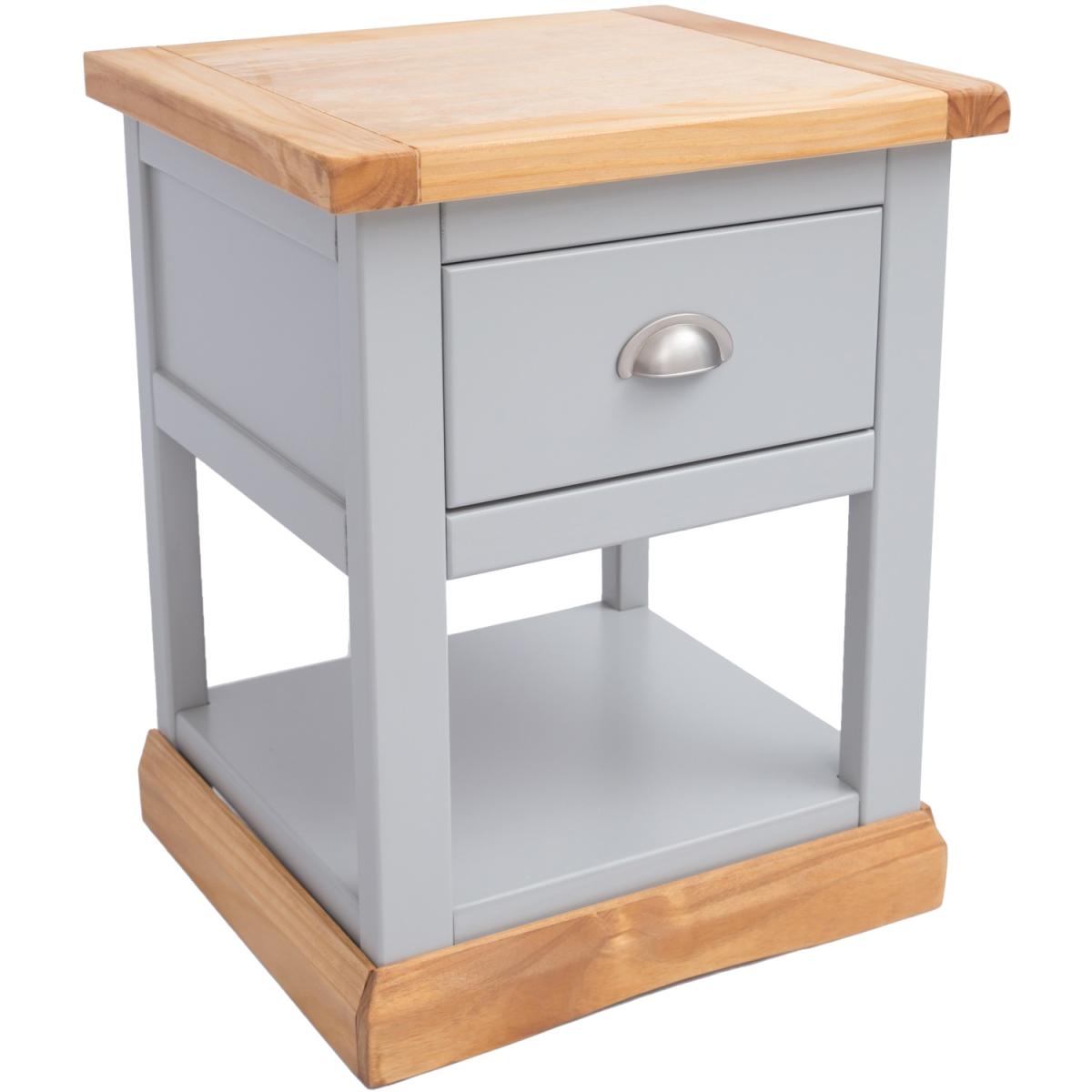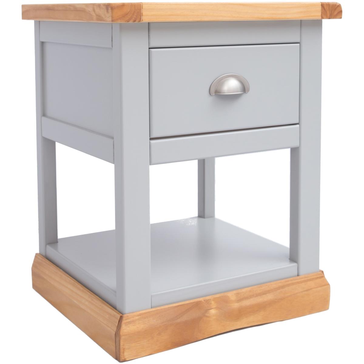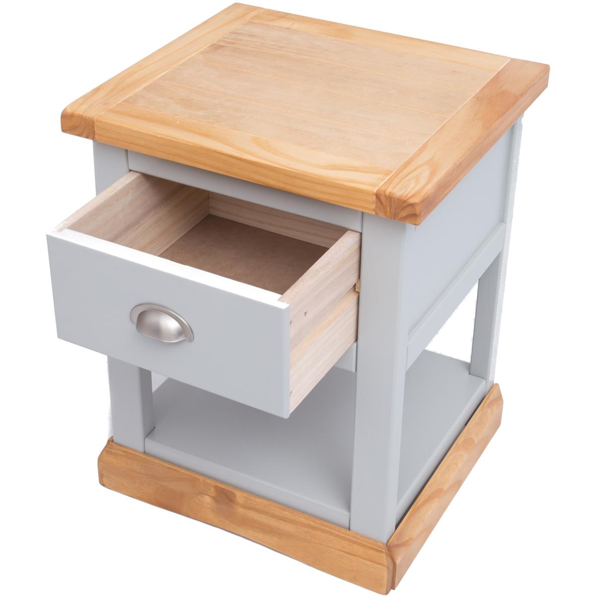 Our Bomporto collection has a simple but pleasing design and is produced by our skilled craftsmen to the highest standards using responsibly sourced wood and veneers. All tops are made using a combination of solid pine wood and veneers and are carefully hand-waxed giving them a great look. The body is finished with high-quality eco-friendly water-based paint in a light grey colour. These attributes combined with a simple construction for easy assembly make it a great value product to be taken home today. This one-drawer bedside with a shelf offers you the ideal mix of closed storage and open space to house your favourite reading material or display a favourite moment. Why not choose a pair - one for each side of the bed.