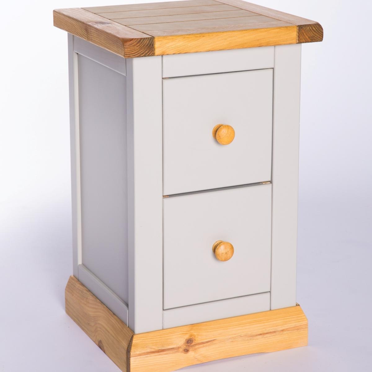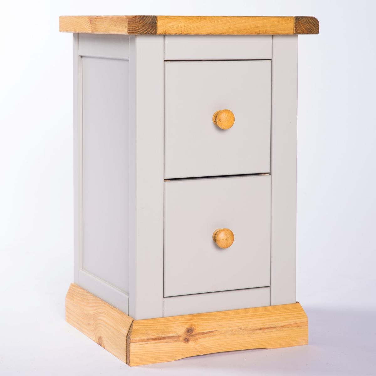 Our Bomporto collection has a simple but pleasing design and is produced by our skilled craftsmen to the highest standards using responsibly sourced wood and veneers. All tops are made using a combination of solid pine wood and veneers and are carefully hand-waxed giving them a great look. The body is finished with high-quality eco-friendly water-base paint in a light grey colour. This petite bedside is perfect for any bedroom where space is at a premium. The two drawers have plenty of space to take your nighttime essentials and keep them close to hand, this allows the top to be free for your alarm or mobile phone. These attributes combined with a simple construction for easy assembly make it a great value product to be taken home today.