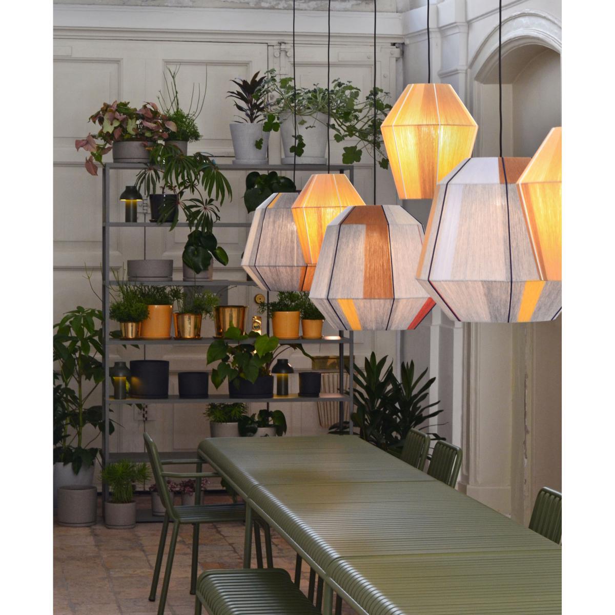 Slow design… The designer of Serbian origin Ana KRAŠ can turn her hand to everything: painting, furniture, objects, photographs. Her world is full of elegance and sobriety. It was in her New York workshop that Bonbon lampshades were born. On a fine metallic structure, she winds up metres of coloured woollen threads which give life to these soft geometric lanterns. These handcrafted creations perfectly illustrate the unique style of Ana Kraš. Inspired by her designs, Ana Kraš's Bonbon lamps are woven by hand using an original weaving technique to create textured, unique pieces. Each lampshade is a unique piece whose appearance and texture may vary slightly. Favouring traditional techniques and materials, Ana affirms her interest in the extreme simplicity of design. Bonbon lamps embody a chic, cool world creating a soft, calm atmosphere in your home. Ana KRAŠ's work has gained international recognition, both for her creations in industrial design and furniture - featured in publications such as Ambient, Architectural Digest, Dazed D, Elle Deco, New York Times Style and Nothing Major - or her plastic works presented in Copenhagen, Los Angeles, Madrid, New York and Paris. Nominated by Ed. Highly varied, Ana Kraš was recently selected for the New York Manufacturer's Biennial at the Manhattan Museum of Art and Design. Ana KRAŠ's Bonbon lamps proved very successful and decorate the trendiest places around the world. PLEASE NOTE. Lampshade sold separately, without electrical system.