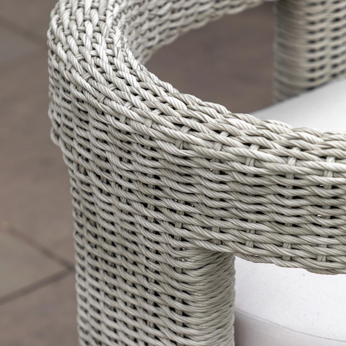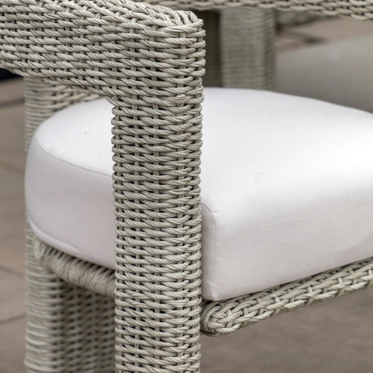 Bring modern style into the garden with the Bondi range. This cream wicker dining chair boasts a contemporary style curved frame with a cut out back rest. The plush cream cushions ensures maximum comfort, making it perfect for long summer evenings spent entertaining guests.
