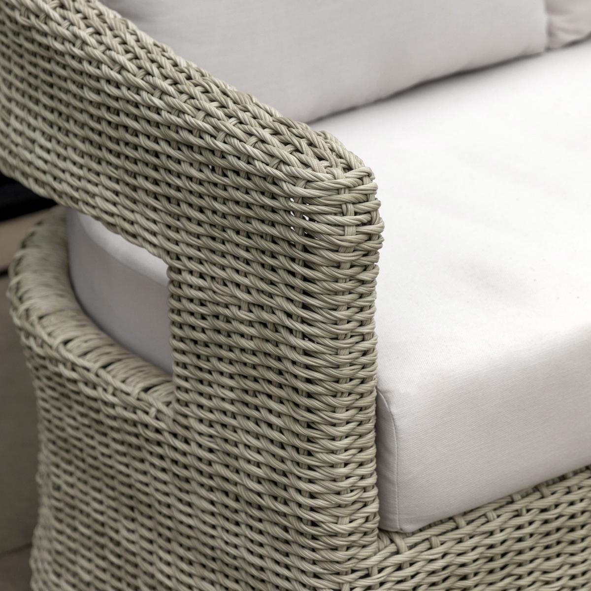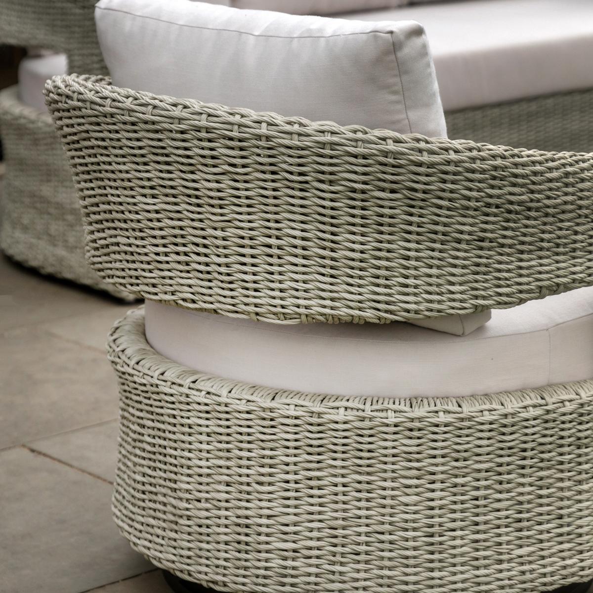 I love this Bondi swivel for its clean profile, durable woven frame and soft, neutral cushions that slot easily into different schemes. The 360° base makes it a versatile choice for relaxed conversation corners or a cosy reading spot. It works equally well in coastal-inspired, Scandi-hybrid or contemporary garden rooms. For styling, layer in a textured throw or a couple of coloured cushions to lift the neutral tones, and position it next to a lightweight side table or on a jute mat to add warmth and interest.