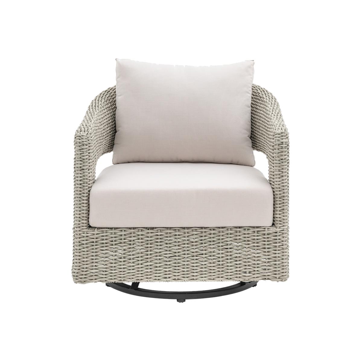 Bring modern style into the garden with the Bondi range. This cream wicker swivel chair boasts a contemporary style curved frame with a cut out back rest. The plush cream cushions ensures maximum comfort, making it perfect for relaxing in the sun.