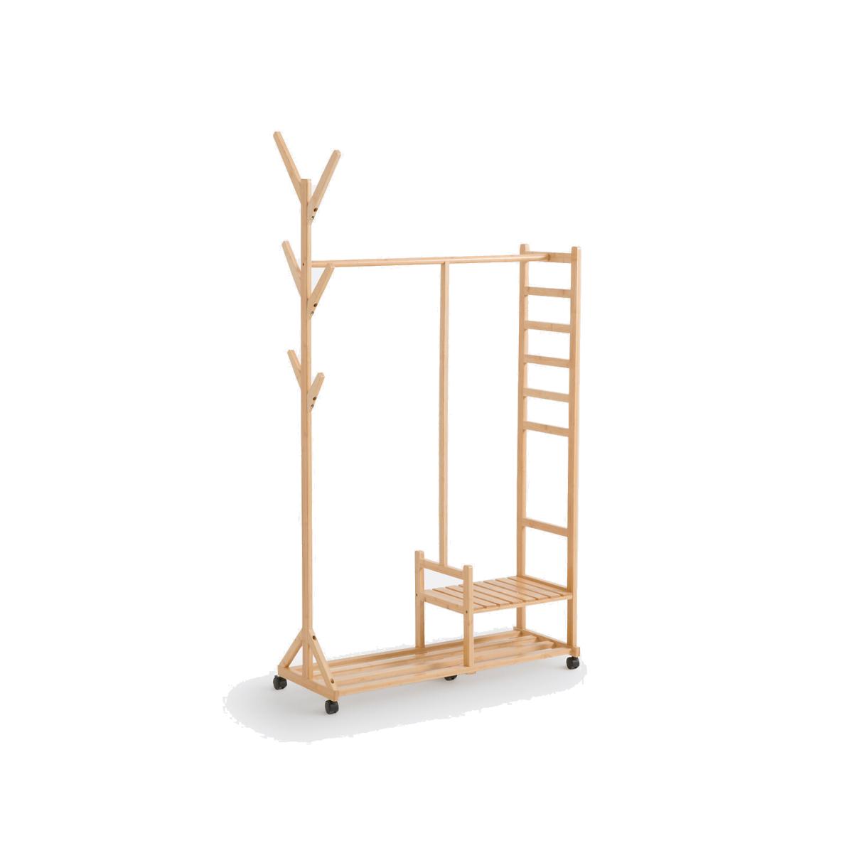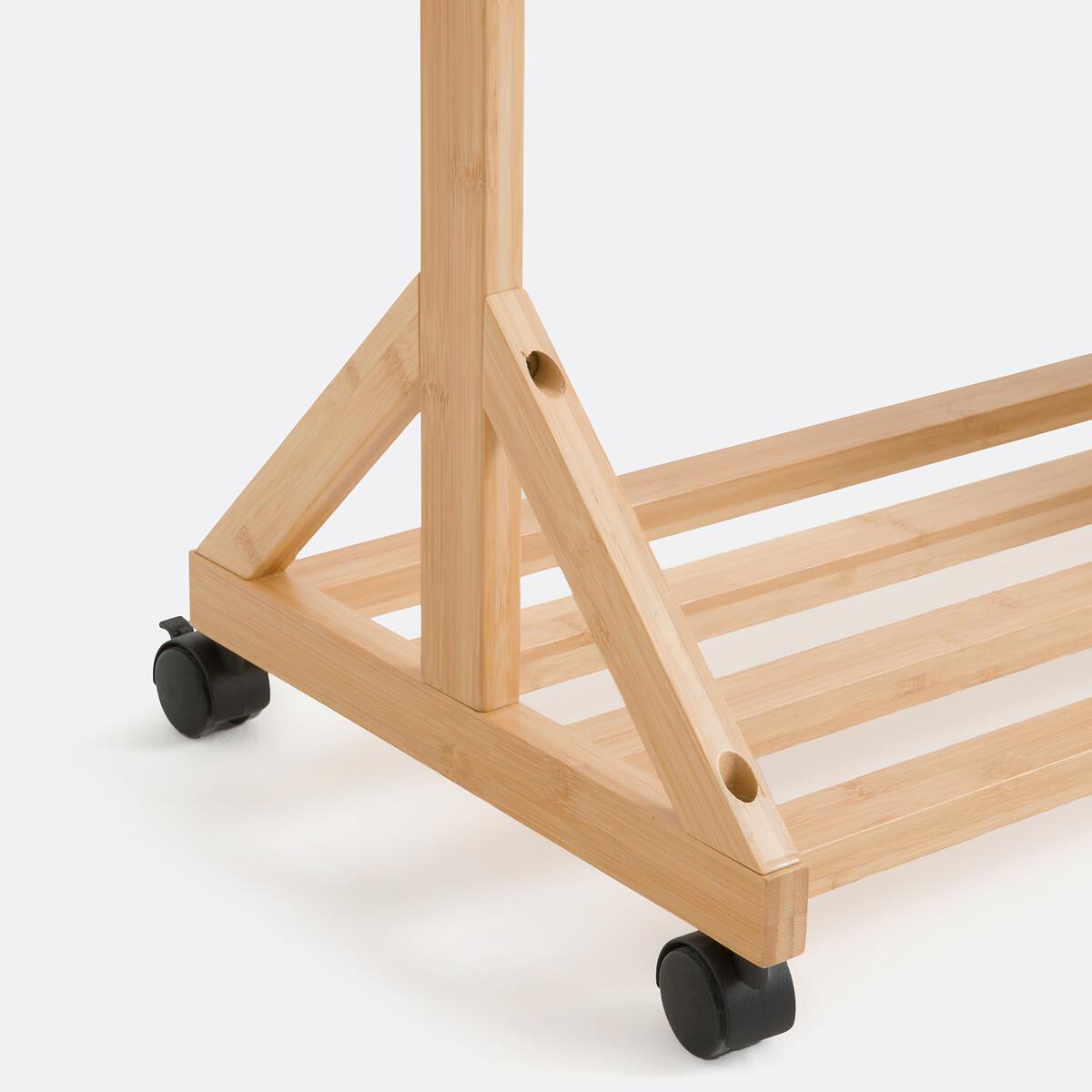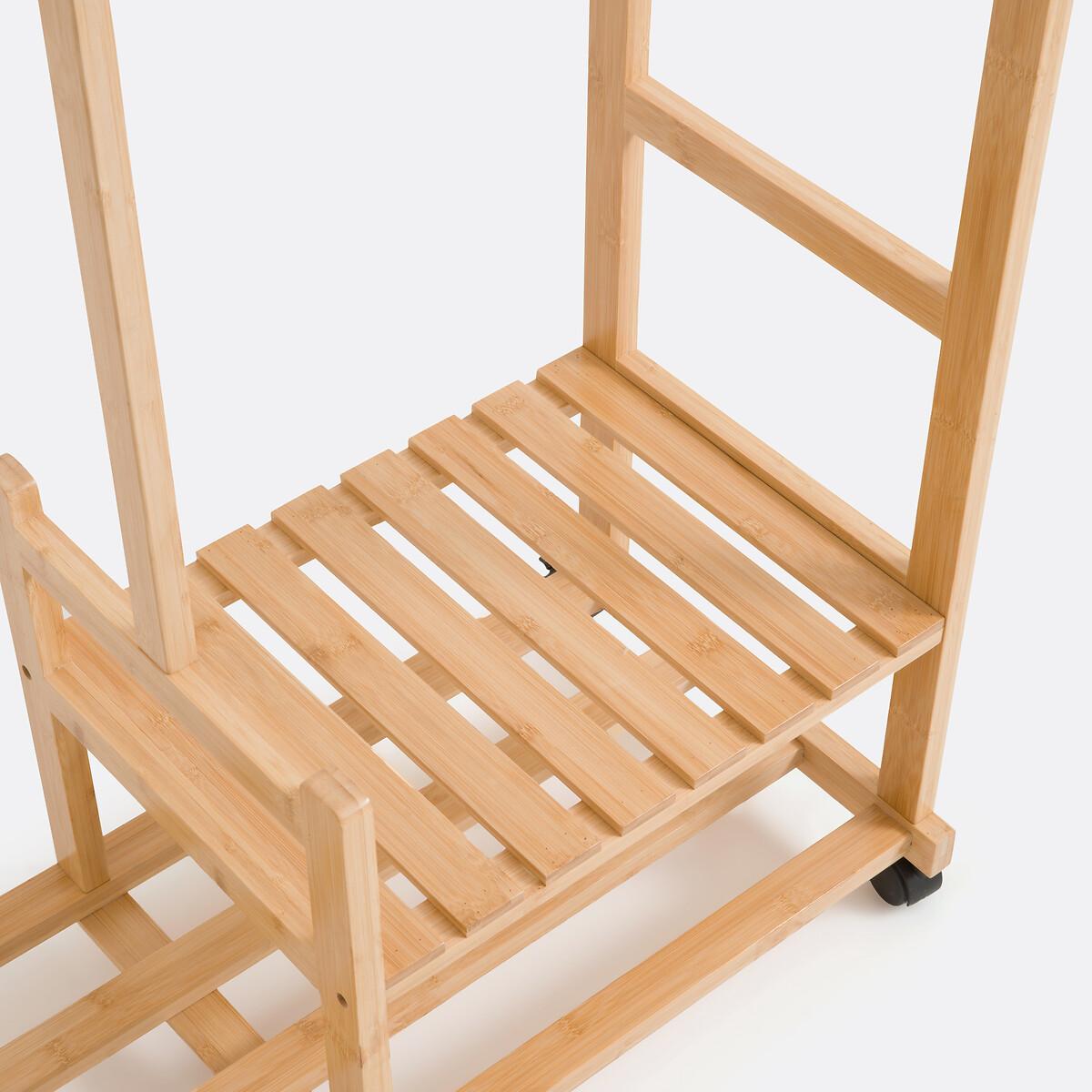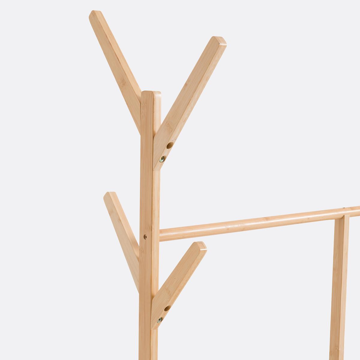 Optimise your space with the Boni bamboo clothes rack. Featuring a hanging rail, a coat rack and a shelf, Boni is an ingenious storage solution for an organised interior. Product Details • Bamboo nitrocellulose finish • FSC® certified wood • 1 hanging rail • 1 shelf • 1 coat rack with 6 hooks • 5 polypropylene caster wheels, including 2 with brakesDimensions. Overall • Width: 100cm • Height: 186cm • Depth: 37.5cm • Weight: 8.45kg. Usable space• Height of left side of wardrobe: 135cm• Height of right side of wardrobe: 115cm• Height of right compartment: 17.5cmDelivery:. This product is sold ready to assemble. It will be delivered to your door. Note! Please check that all access points are large enough to accommodate your delivery (doors, stairs, lifts). • WOOD FROM SUSTAINABLY MANAGED FORESTS. FSC® certified wood comes from forests that are environmentally, socially and economically well managed. Dimensions and weight of parcel1 parcel • L171 x H13 x D43.5cm. 10.2kg.