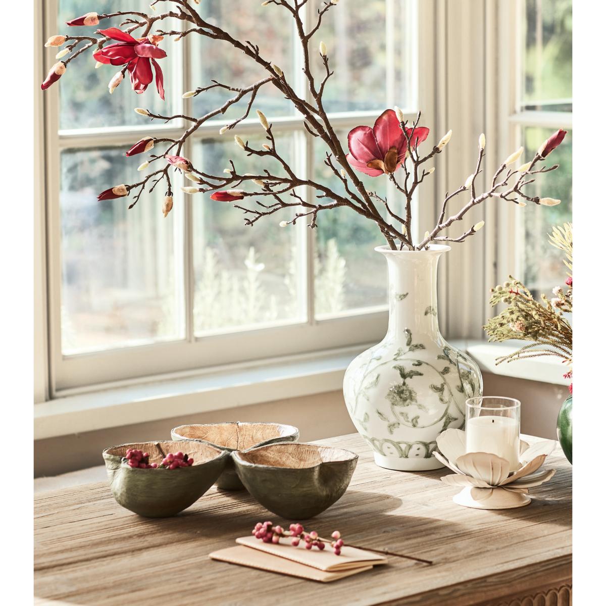 Our Bonington Range has expanded to include this long-stemmed vase, perfect for tall blooms, real or faux. The swirling jade green pattern showcases an abstract floral design that is then fired at a high temperature for a glossy finish.