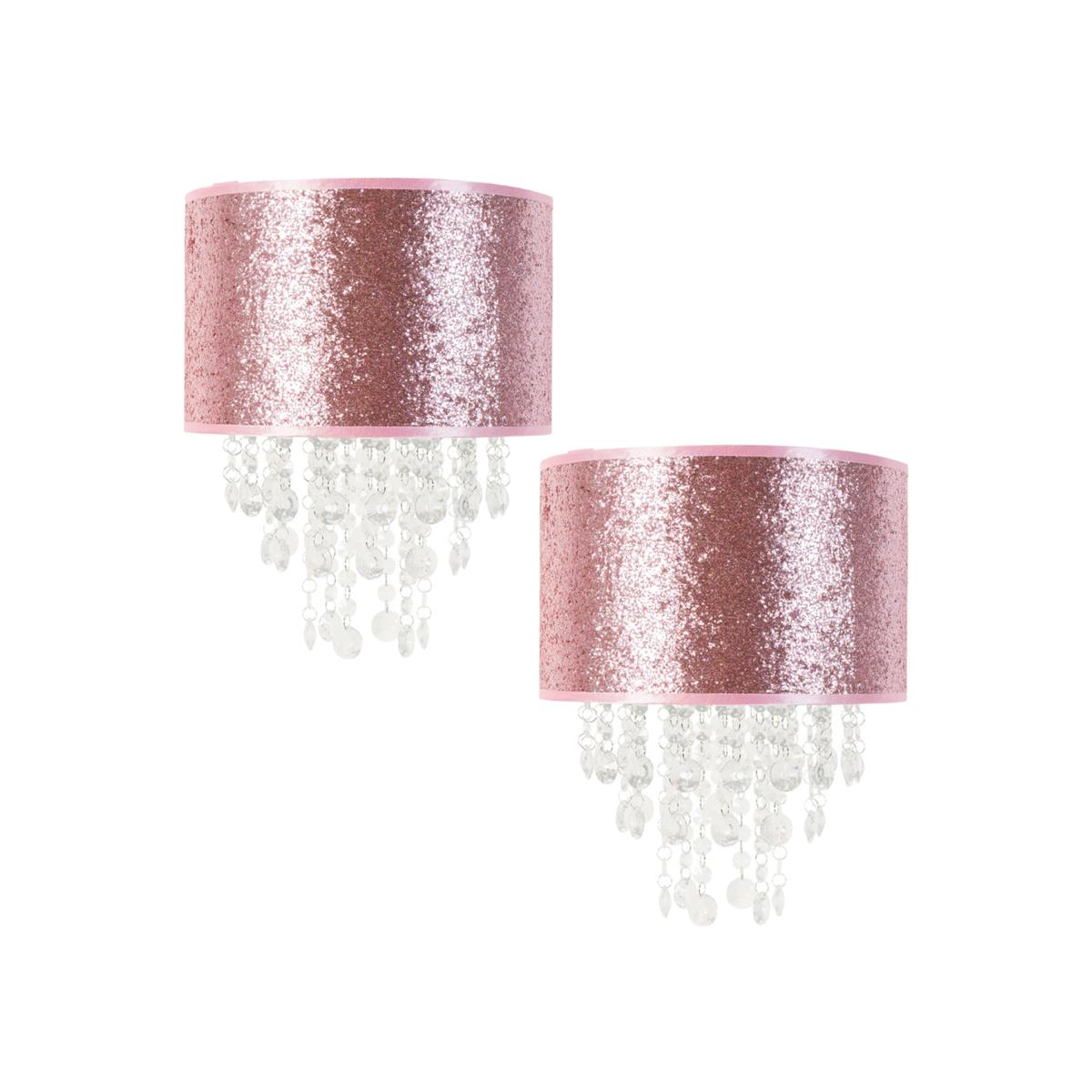 This pair of Bonita pink glitter pendant shades with clear droplets is ready to bring beauty and grace to any space. The acrylic droplets will cast dazzling drops of lights over the room whilst the pink glitter shades ooze palatial princess vibes. Plus, they've got all the wow of a chandelier without taking up so much room. Win win! A pair of sophisticated pendant shades with pink glitter and clear droplets. Fit any standard pendant lamp. They're beauty and they're grace, they're ready to brighten up your space. Sparkling glitter and droplets that look like crystals. What's not to love? A dazzling addition to any kitchen, living room, bedroom, hallway or home office. Just make sure you've got the headroom! Requires 1 x E27 or BC bulb, max 10. W. Personalise the lighting with your choice of warm, cool and smart bulb. A pair of easy-fit pendant shades, designed to make the most of any standard pendant ceiling lights without breaking a sweat.