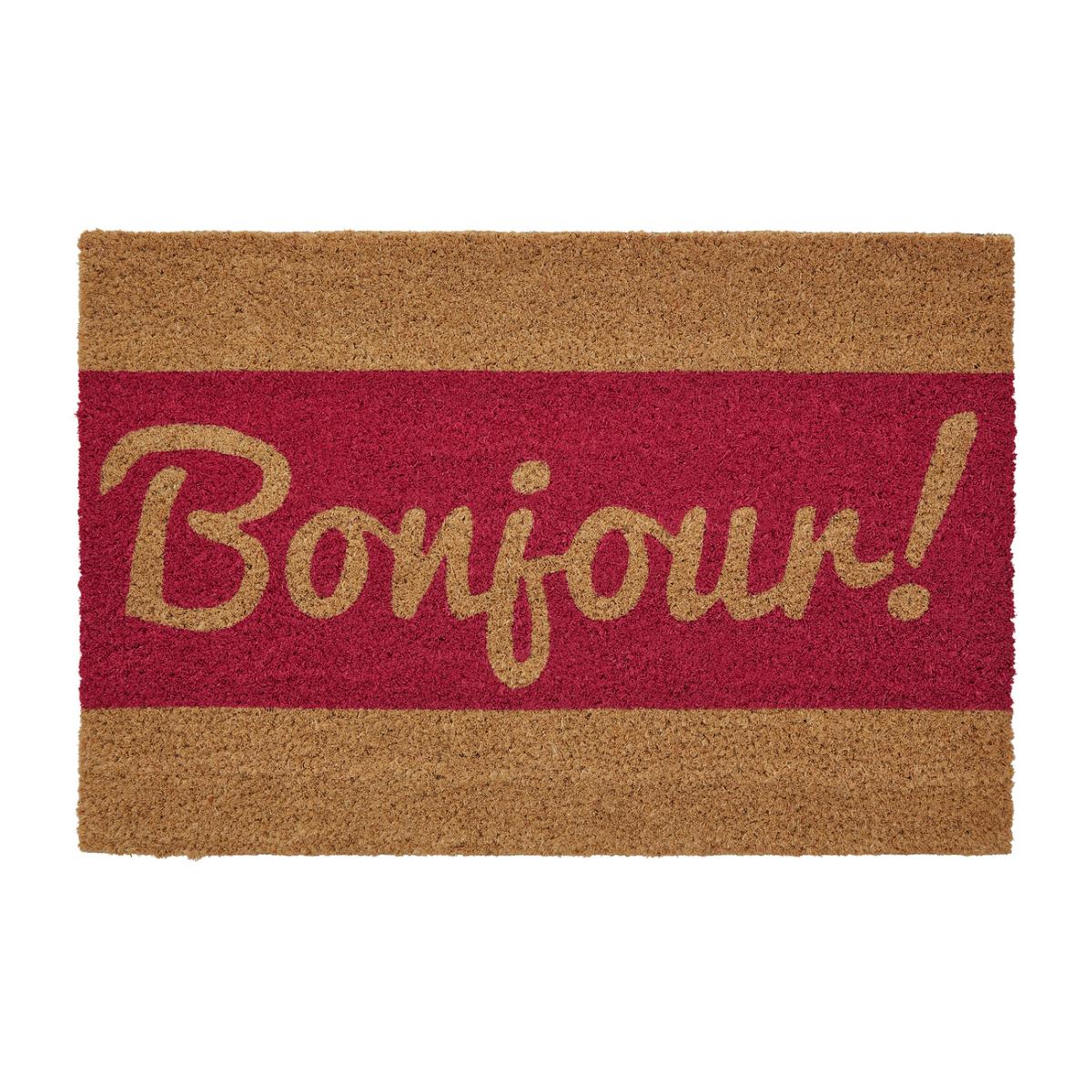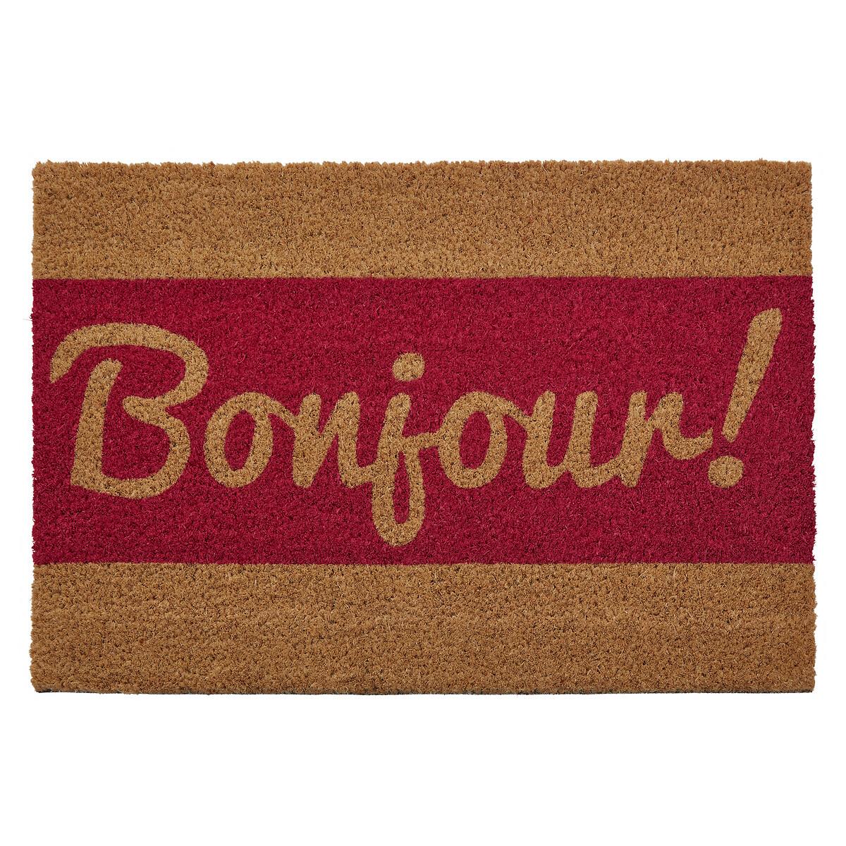 This doormat with worded detail ""Bonjour!"" will be a welcoming addition for the home or office doorstep. Please ensure this item is kept in a sheltered spot if being used outdoors. Composition: Coir & PVC Backing. Product Dimensions: 40cm x 60cm. This product will be dispatched by one of our trusted suppliers. You’ll be contacted by their selected courier about your delivery.