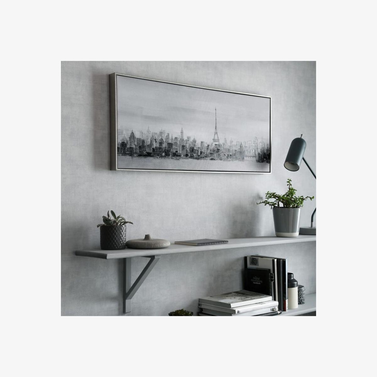I love the Bonne Nuit Paris hand painted canvas for its understated elegance and versatility. Its neutral grey palette makes it a perfect choice for contemporary, minimalist, or even industrial interiors, adding a touch of Parisian charm without overpowering the space. It works well in living rooms, bedrooms, or home offices, especially when paired with sleek furniture and neutral tones. Practical styling tips include hanging it at eye level above a console or sofa, layering with simple black or white frames for a curated look, or combining it with greenery to bring in natural texture. This artwork's subtle sophistication makes it a reliable focal point that can effortlessly elevate various interior styles.