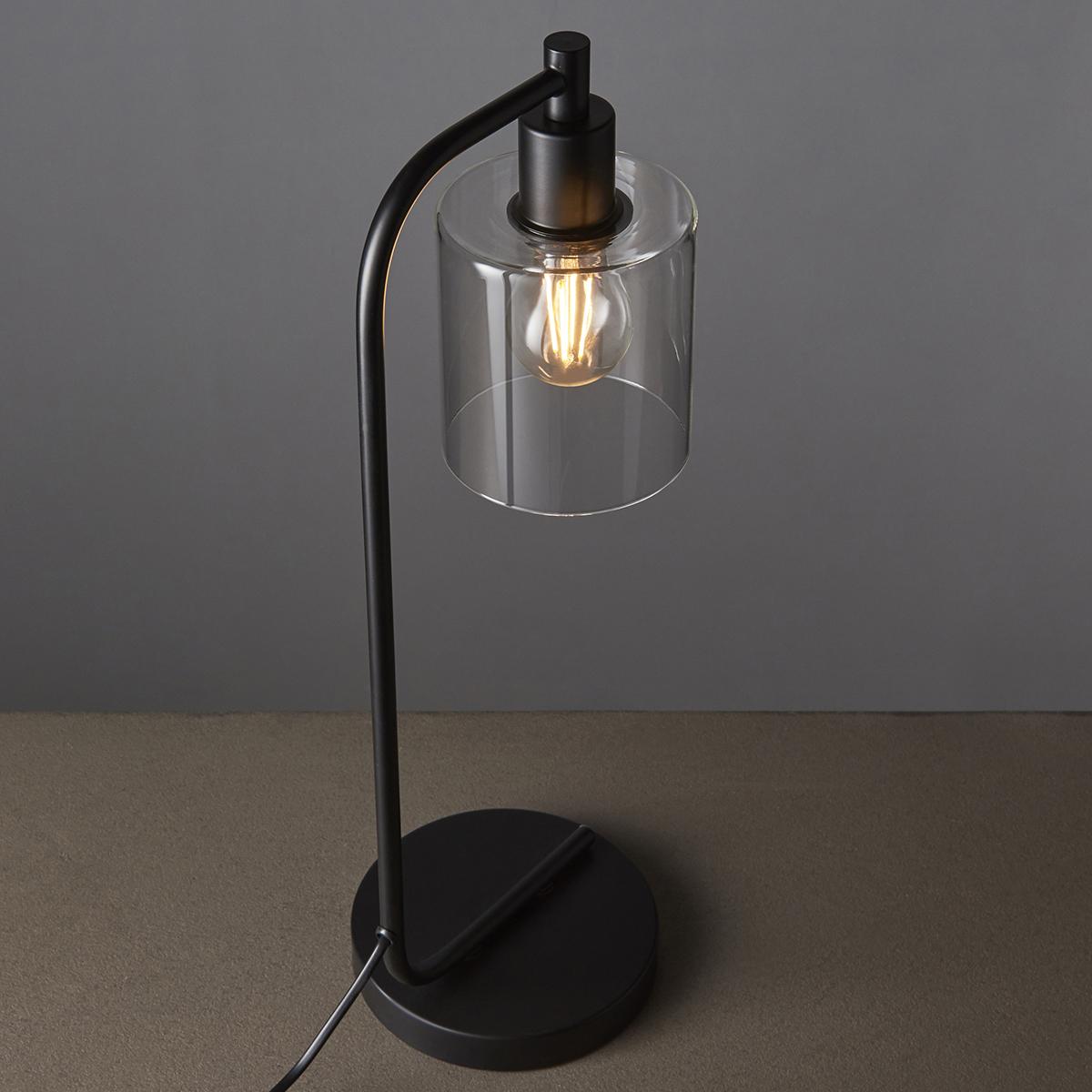 I love this lamp because of its sleek, contemporary design that combines clear glass with a matte black finish, making it incredibly versatile. It works well in modern, minimalist, or industrial interiors, and can effortlessly elevate a bedside table, desk, or sideboard. For styling tips, consider pairing it with similarly monochromatic accessories or contrasting textures, like a soft fabric shade or a natural wood surface, to create visual interest. Practicality-wise, its clear glass shade offers a clean, unobstructed light, ideal for task lighting, while the black metal adds a touch of understated sophistication. It’s a smart, stylish addition that can ground your space without overpowering it.