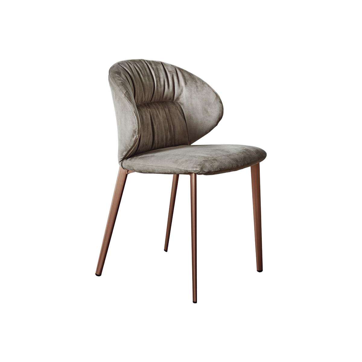 Bontempi Drop Dining Chair, Rose Gold Frame M329 and Mink Waterproof Nabuk TN004 Please note prices are shown for the following spec: Bontempi Drop Dining Chair 34. 82, W58 x D59 x H82cm, Rose Gold Frame M329 and Mink Waterproof Nabuk TN004. Images show a Bontempi Drop Dining Chair, Grey | Barker & Stonehouse