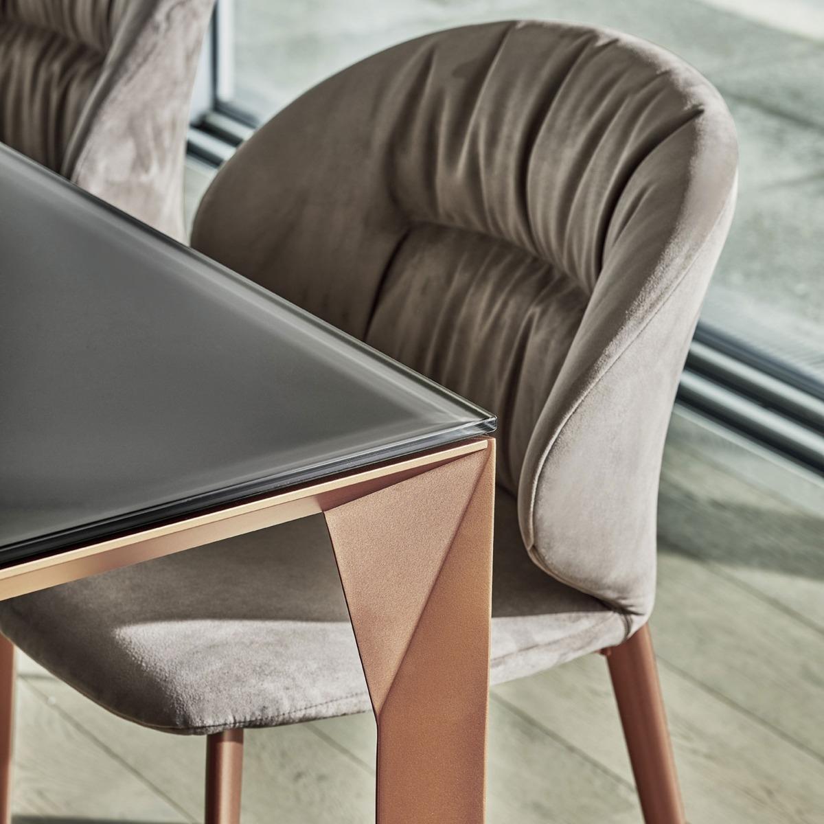 The Bontempi Drop chair is a standout piece thanks to its rose gold frame and mink waterproof nabuk, making it both stylish and practical. I love how it adds a touch of luxe sophistication to dining areas and works beautifully in contemporary or glam interiors. To style it effectively, pair it with a marble or glass table to highlight the metallic frame, or use it as an accent chair in a bedroom or lounge for added elegance. Its neutral mink fabric makes it versatile, so it blends well with both muted colour palettes and richer hues, giving you flexibility in your overall design scheme. Practical styling tips include mixing it with other soft textures or metallic accents for a balanced, cohesive look.