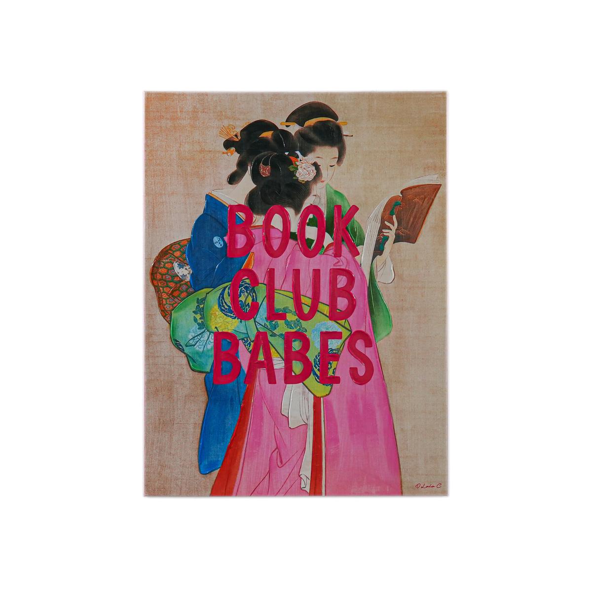 Celebrate the joy of shared stories and timeless elegance with the Book Club Babes Geisha Canvas. Featuring one woman showing a book to another, this artwork is adorned with the playful 'Book Club Babes' text and enhanced by hand embellishments for added charm. With built-in hooks for easy hanging, it's a perfect addition to your reading nook, hallway, or gallery wall.