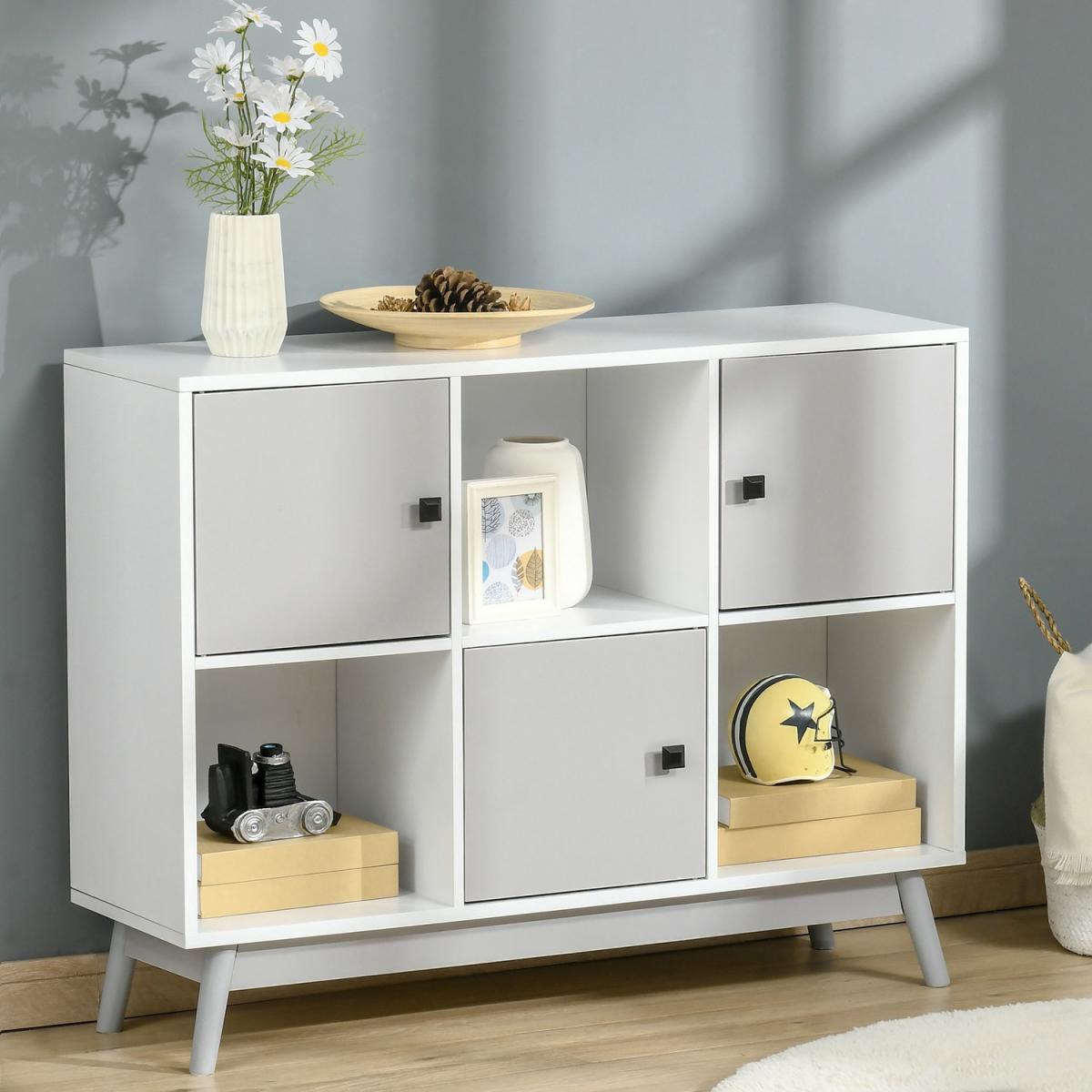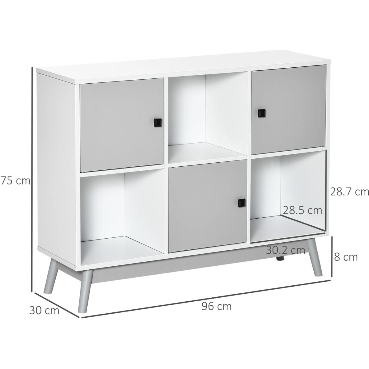 Quickly add much-needed storage with this HOMCOM cabinet. Six same-sized compartments are formed of three cabinets and three open cubes - a mix of display and storage to hold and show off everything you want in one place. It's subtle design makes it suitable for use in the home and office: use as an entryway table, bedroom side cabinet, living room bookcase, or how about as a toy organiser? Finished with wooden legs for full support.
