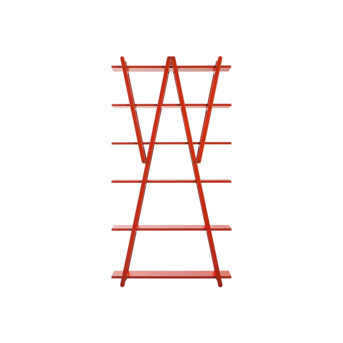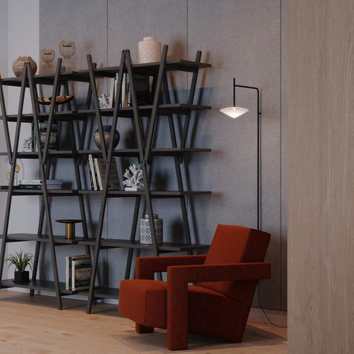 The bookcase designed by Vico Magistretti offers a striking yet minimalist profile that works well in contemporary and eclectic interiors. Its bold red colour and unique zigzag frame make it an eye-catching centrepiece, ideal for adding a pop of colour to a neutral space. I love how it combines function with sculptural appeal, making it perfect for display as well as storage. For styling, consider using it to showcase carefully curated books, artwork, or decorative objects in a living room or office. Its open structure lends itself to layering items at different heights, creating visual interest without feeling cluttered. When placing this piece, think about balancing it with softer textures and more subdued furniture to let its distinctive silhouette stand out.