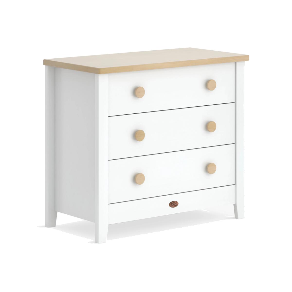 With a stylish design, Boori's 3 drawer chest offers an elegant storage solution for nurseries and bedrooms. The wooden handles and chest top nod to their love of natural materials and the finish complements a range of furniture. Featuring 3 fully-extendable drawers, this chest of drawers features plenty of room for clothing, bedding or accessories. If you'd like to use it in the nursery, a changing mat can be placed on top for easy and convenient changing.