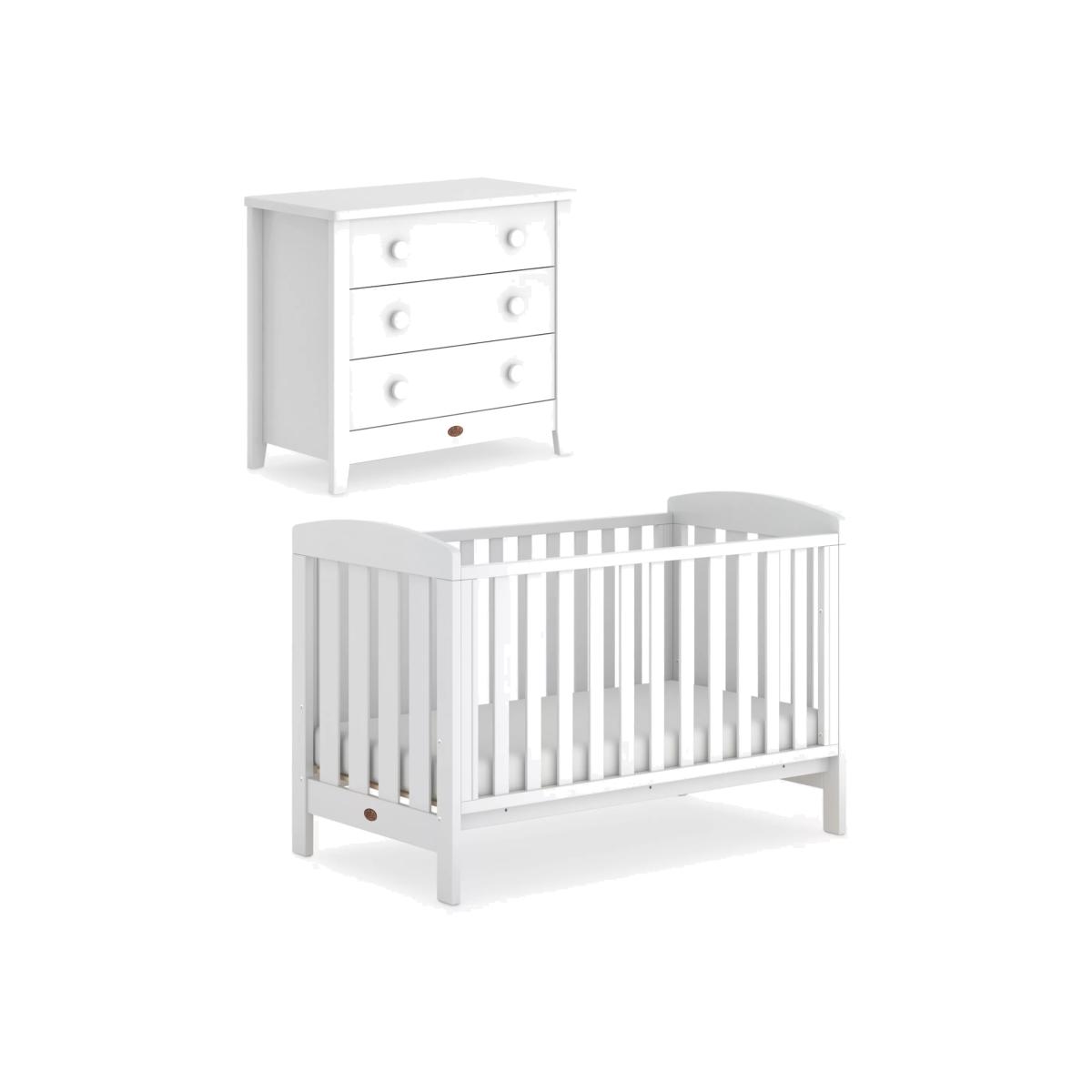 From Boori's Alice range, this cotbed and dresser set will bring true effortless style to your little one's nursery or bedroom. Alice cotbed: Boori's Alice Cotbed will bring true effortless style to your little one’s nursery or bedroom. It features a subtle, curved design with minimal detailing making it a stunning addition to both traditional and modern nurseries. Although crafted from sustainable solid wood, this charming cot bed has a slender frame and open-end panels making it feel dainty and airy. The Alice Cotbed stands out as a safe baby sleeping solution. With a sturdy construction and non-toxic finishes, you can be assured your baby rests in the safest environment possible. Designed to grow with your child, it transitions effortlessly to a long-lasting toddler bed, with multiple base and side panel heights to support your family through every stage of the sleep journey. A Toddler Guard Panel is available to purchase separately for additional security. Key Features: Converts from cot to toddler bed suitable from birth to around 5 years 2 base heights - the higher base height for easy access to newborns, lower base height for when baby is able to pull themselves up. Crafted with sustainable solid Australian Araucaria wood, New Zealand Radiata wood and engineered timber. The unique paint finishes are nursery-friendly and enhance the natural beauty of the sustainable timber Option to rotate the fixed side panel to provide a low side when converted to a toddler bed for greater safety and stability. Requires a L132 x W70cm mattress (not included) 3 Drawer Chest: The design of this 3 Drawer Chest features rounded wooden handles and a chest top which nods to the brand's love of natural materials. It also includes 3 fully-extendable drawers, offering plenty of room for clothing or bedding. It is crafted from sustainably sourced European beech, a beautiful wood admired for its strength and durability, and finished in a chip-resistant low voc bio-paint to help keep your home free from nasty chemicals.