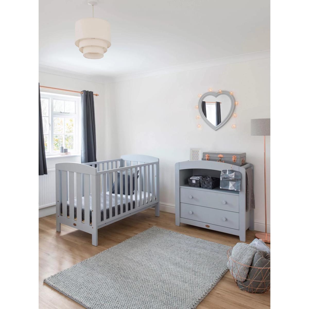 From Boori's Alice range, this cot bed and dresser set will bring true effortless style to your little one’s nursery or bedroom. The Cotbed: The Alice Cotbed features a subtle, curved design with minimal detailing making it a stunning addition to both traditional and modern nurseries. Key Features: Converts from cot to toddler bed suitable from birth to around 5 years 2 base heights to allow easy access to baby Toddler Guard Panel available separately Comes with mattress included The Dresser: The Curved 2 Drawer Chest Changer is extremely practical and ideal for fitting into a snug space. The classic curved design makes it a perfect companion for a range of Boori furniture in your little one's bedroom or nursery. Key Features: 2 spacious storage drawers Integrated change tray, storage shelf and hanging rail Inner dimensions of change tray Lx80cm Wx40cm Hx5cm Both items are packed flat for home assembly.