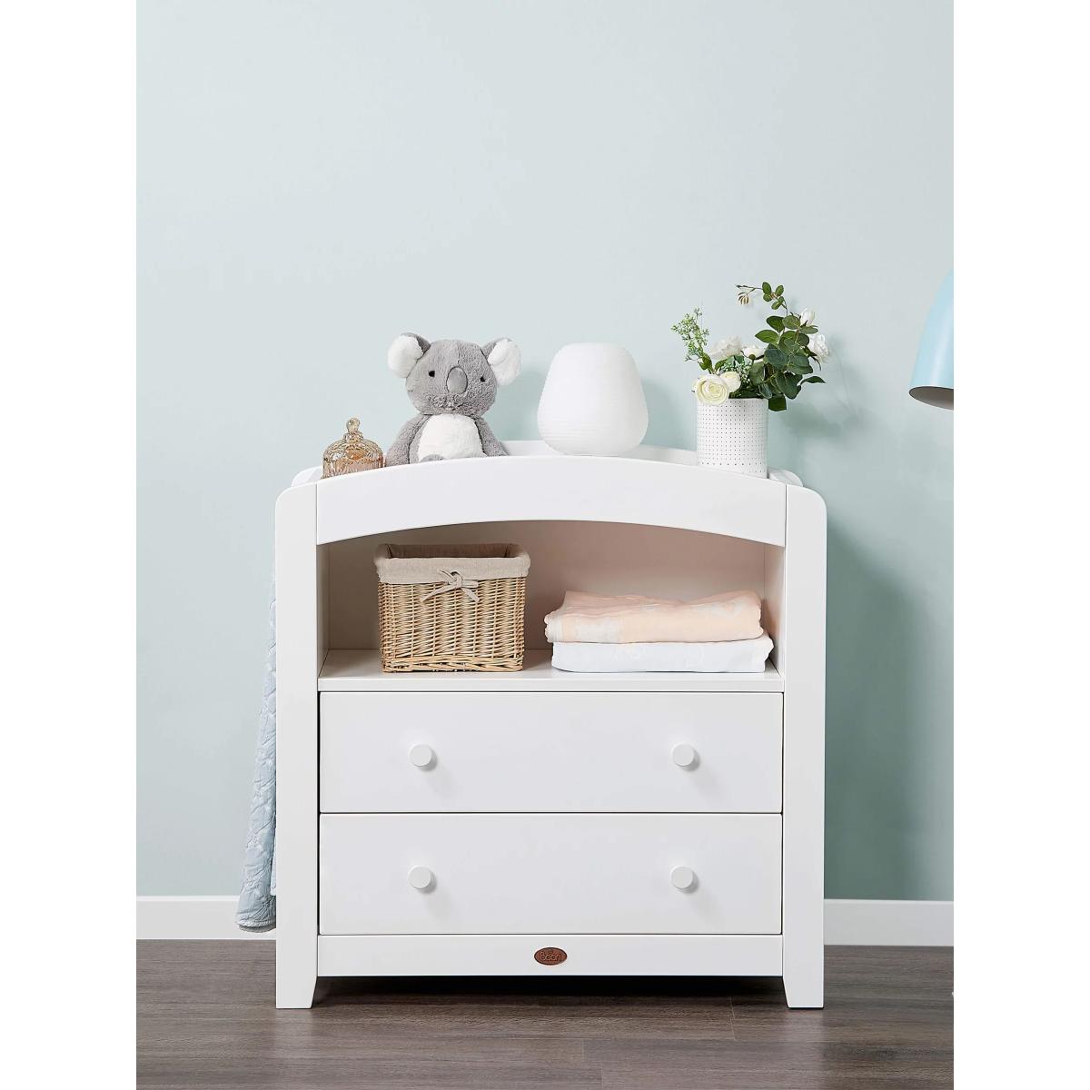From Boori's Alice range, this cot bed and dresser set will bring true effortless style to your little one’s nursery or bedroom. The Cotbed: The Alice Cotbed features a subtle, curved design with minimal detailing making it a stunning addition to both traditional and modern nurseries. Key Features: Converts from cot to toddler bed suitable from birth to around 5 years 2 base heights to allow easy access to baby Toddler Guard Panel available separately Comes with mattress included The Dresser: The Curved 2 Drawer Chest Changer is extremely practical and ideal for fitting into a snug space. The classic curved design makes it a perfect companion for a range of Boori furniture in your little one's bedroom or nursery. Key Features: 2 spacious storage drawers Integrated change tray, storage shelf and hanging rail Inner dimensions of change tray Lx80cm Wx40cm Hx5cm Both items are packed flat for home assembly.