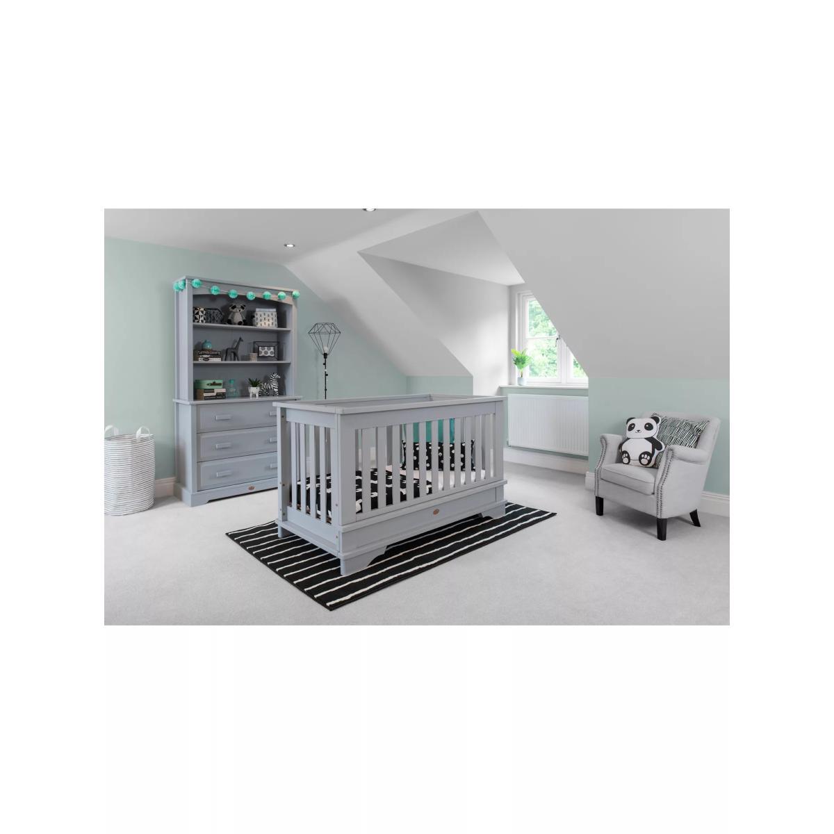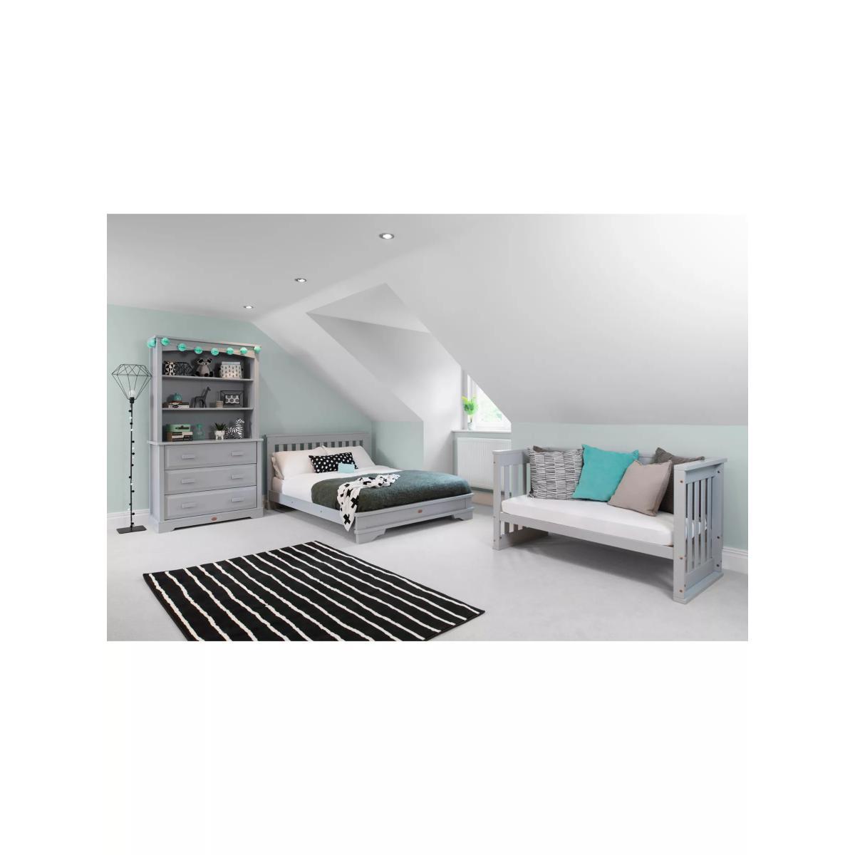 Boori’s Eton Convertible Plus Cot Bed seamlessly combines classic and contemporary styling to create a timeless centrepiece for the nursery. Lovingly crafted from chunky solid wood with minimal detailing, this stylish cot bed showcases the quality of Boori’s craftsmanship. Boori uses FSC-certified solid wood famed for its beauty and durability to ensure their furniture can support your family for years to come. All Boori cot beds have the ability to transform into a toddler bed with the use of a toddle guard rail (sold separately), lasting you from birth to around 5 years. Boori’s Convertible Plus cot beds take longevity to a new level, giving you the ability to transform your cot bed into a double bed and cosy sofa. The conversion kit (sold separately) lets you transform your Boori cot bed into a double bed with cosy sofa. Its extension poles and complete set of slats will give you good support for a double mattress (supplied separately). Assembly required. Key Features: Converts from cot to toddler bed suitable from birth to around 5 years Transforms into a full adult-sized double bed (L207 x W147 x H90cm) as well as a cosy sofa with the conversion kit available separately. 2 base heights - the higher base height for easy access to newborns, lower base height for when baby is able to pull themselves up. Crafted with sustainable solid Australian Araucaria wood and Yellow Poplar wood Finished in Boori’s unique Eco-Blend Bio-Paint which is made with renewable plant extracts. Option to rotate the fixed side panel to provide a low side when converted to toddler bed for greater safety and stability. Packed flat for home assembly Requires a L132 x W70cm mattress (sold separately)
