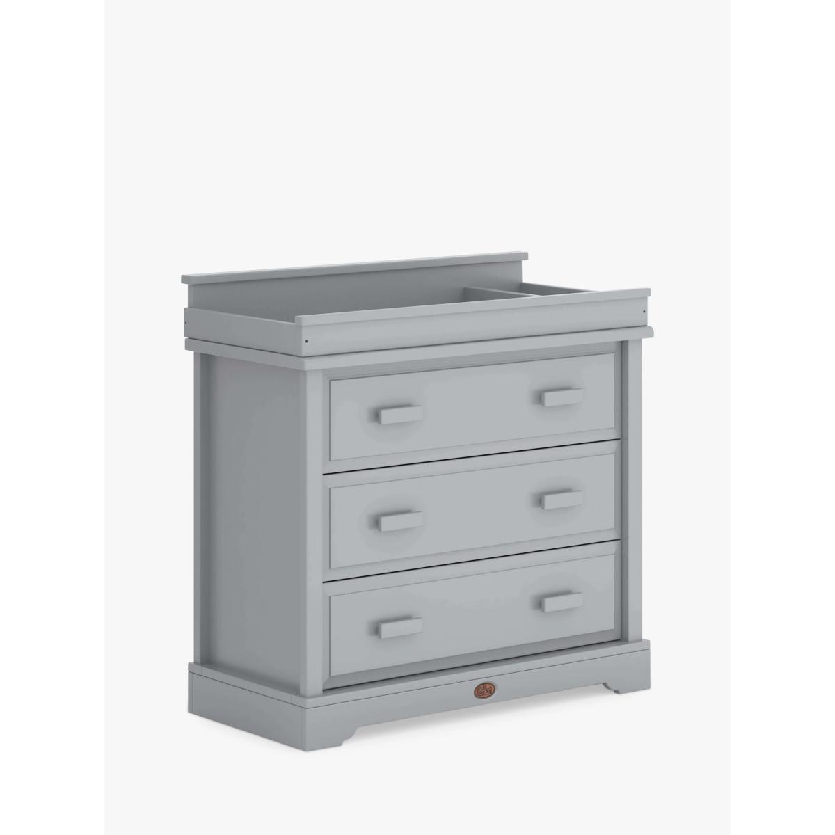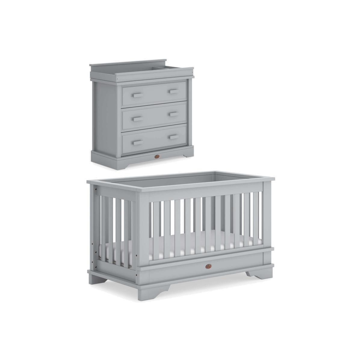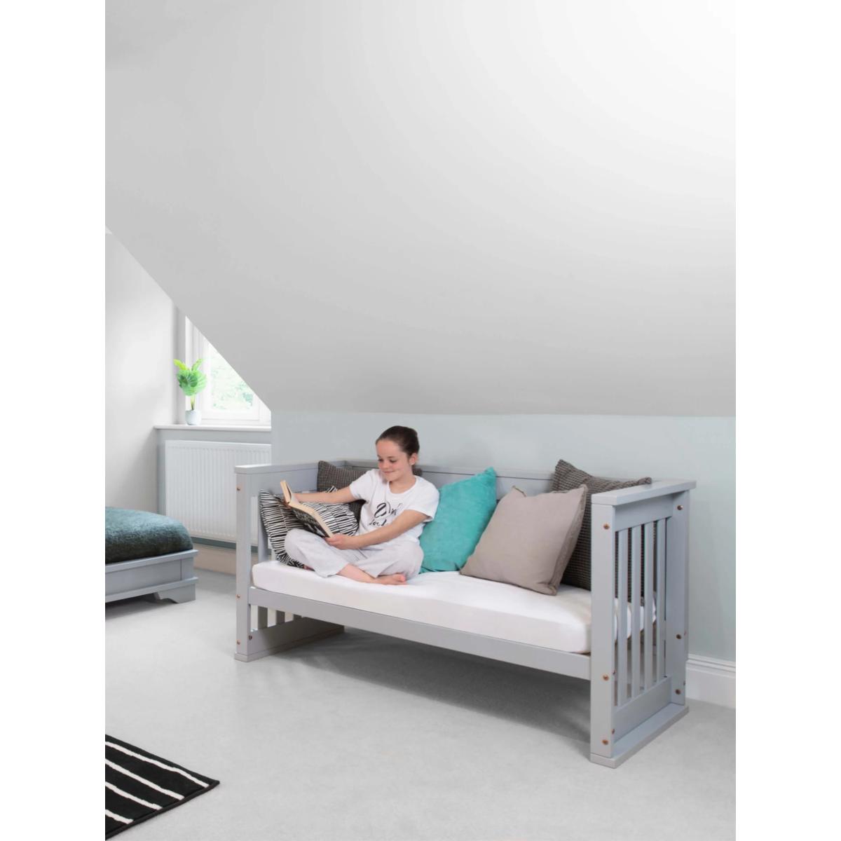 Get a timeless style for your child's room with Eton Convertible Plus cot bed and 3 Drawer Dresser with Squared Changing Station set from Boori. The Boori furniture range combines classic and contemporary details to provide the perfect surroundings for your child. Lovingly crafted from chunky solid wood with minimal detailing, this stylish cot bed showcases the quality of Boori craftsmanship. All Boori cot beds have the ability to transform into a toddler bed, lasting you from birth to around 5 years. This Convertible Plus cot bed take longevity to a new level, giving you the ability to transform your cot bed into a double bed and cosy sofa at the same time. Cotbed: Converts from cot to toddler bed suitable from birth to around 5 years. The cotbed has two base heights for ease of access and to keep baby safe. It also converts to a full-size double bed, ideal for when your little one has outgrown the junior bed. Crafted with sustainably sourced Australian Araucaria and New Zealand Radiata wood, base made from engineered timber. The unique paint finishes are nursery-friendly and enhance the natural beauty of the sustainable timber Cotbed mattress included The conversion kit (sold separately) lets you transform your Boori cotbed into a double bed with cosy sofa. Its extension poles and a complete set of slats will give you good support for a double mattress (supplied separately). Assembly required. Dresser: Crafted with dovetail joints and fully-extendable drawers, this chest of drawers features plenty of storage space for baby's belongings. A changing station is included and can be removed when no longer required.