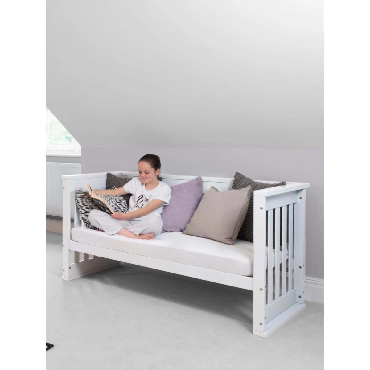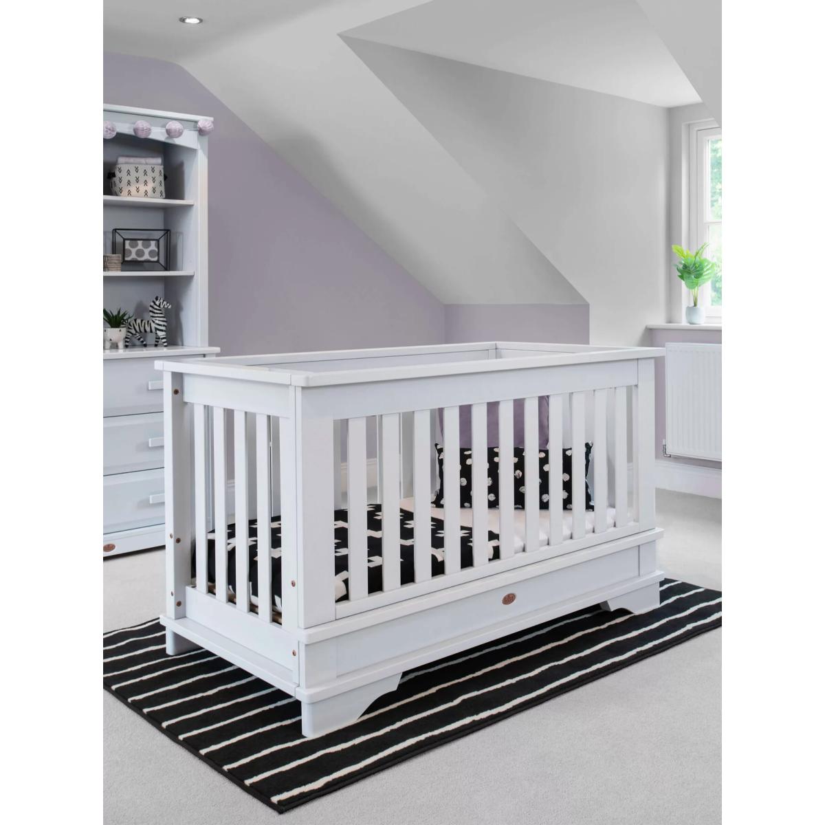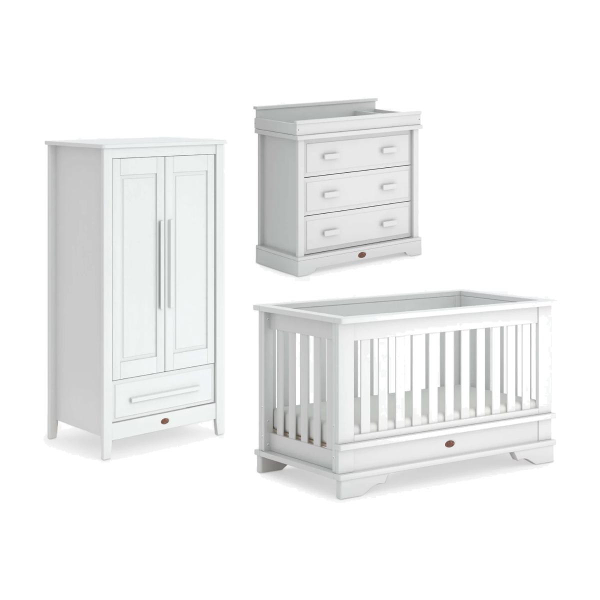 Get a timeless style for your child's room with Eton Convertible Plus cot bed, Linear wardrobe and 3 Drawer Dresser with Squared Changing Station set from Boori. The Boori furniture range combines classic and contemporary details to provide the perfect surroundings for your child. Lovingly crafted from chunky solid wood with minimal detailing, this stylish cot bed showcases the quality of Boori craftsmanship. All Boori cot beds have the ability to transform into a toddler bed, lasting you from birth to around 5 years. This Convertible Plus cot bed take longevity to a new level, giving you the ability to transform your cot bed into a double bed and cosy sofa at the same time. Cotbed: Converts from cot to toddler bed suitable from birth to around 5 years. The cotbed has two base heights for ease of access and to keep baby safe. It also converts to a full-size double bed, ideal for when your little one has outgrown the junior bed. Crafted with sustainably sourced Australian Araucaria and New Zealand Radiata wood, base made from engineered timber. The unique paint finishes are nursery-friendly and enhance the natural beauty of the sustainable timber Cotbed mattress included The conversion kit (sold separately) lets you transform your Boori cotbed into a double bed with cosy sofa. Its extension poles and a complete set of slats will give you good support for a double mattress (supplied separately). Assembly required. Dresser: Crafted with dovetail joints and fully-extendable drawers, this chest of drawers features plenty of storage space for baby's belongings. A changing station is included and can be removed when no longer required. Wardrobe: Offering versatile storage for the whole family, the Linear Wardrobe can be used with two hanging rails for baby's clothing or one hanging rail to provide more space for older children's and adults' clothing.
