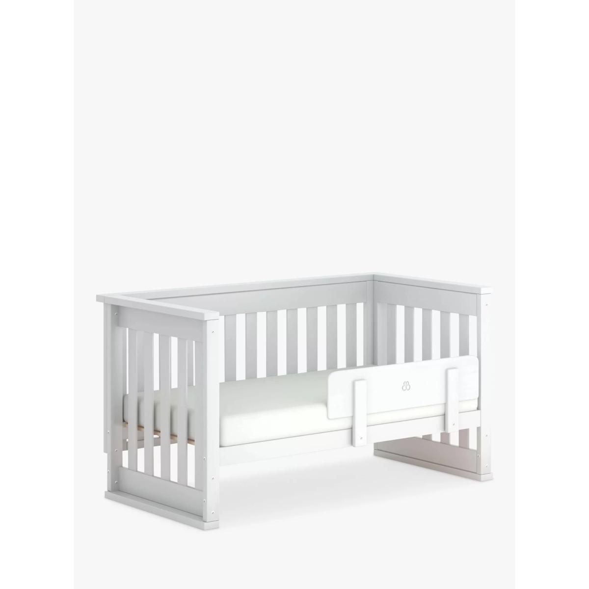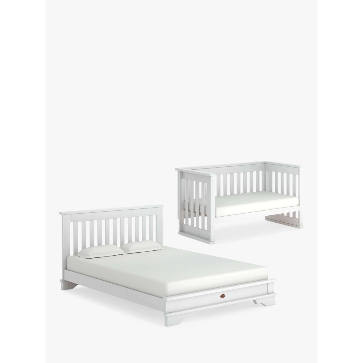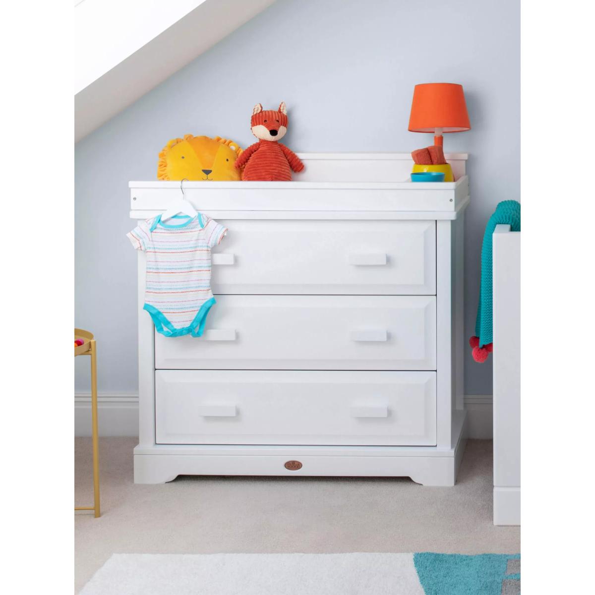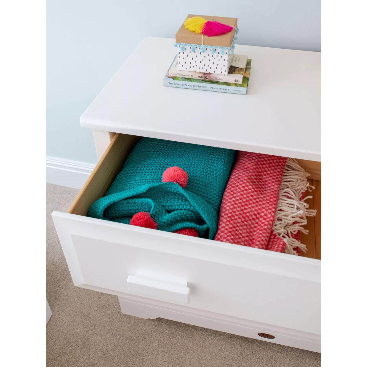 Get a timeless style for your child's room with Eton Convertible Plus cot bed, Linear wardrobe and 3 Drawer Dresser with Squared Changing Station set from Boori. The Boori furniture range combines classic and contemporary details to provide the perfect surroundings for your child. Lovingly crafted from chunky solid wood with minimal detailing, this stylish cot bed showcases the quality of Boori craftsmanship. All Boori cot beds have the ability to transform into a toddler bed, lasting you from birth to around 5 years. This Convertible Plus cot bed take longevity to a new level, giving you the ability to transform your cot bed into a double bed and cosy sofa at the same time. Cotbed: Converts from cot to toddler bed suitable from birth to around 5 years. The cotbed has two base heights for ease of access and to keep baby safe. It also converts to a full-size double bed, ideal for when your little one has outgrown the junior bed. Crafted with sustainably sourced Australian Araucaria and New Zealand Radiata wood, base made from engineered timber. The unique paint finishes are nursery-friendly and enhance the natural beauty of the sustainable timber Cotbed mattress included The conversion kit (sold separately) lets you transform your Boori cotbed into a double bed with cosy sofa. Its extension poles and a complete set of slats will give you good support for a double mattress (supplied separately). Assembly required. Dresser: Crafted with dovetail joints and fully-extendable drawers, this chest of drawers features plenty of storage space for baby's belongings. A changing station is included and can be removed when no longer required. Wardrobe: Offering versatile storage for the whole family, the Linear Wardrobe can be used with two hanging rails for baby's clothing or one hanging rail to provide more space for older children's and adults' clothing.
