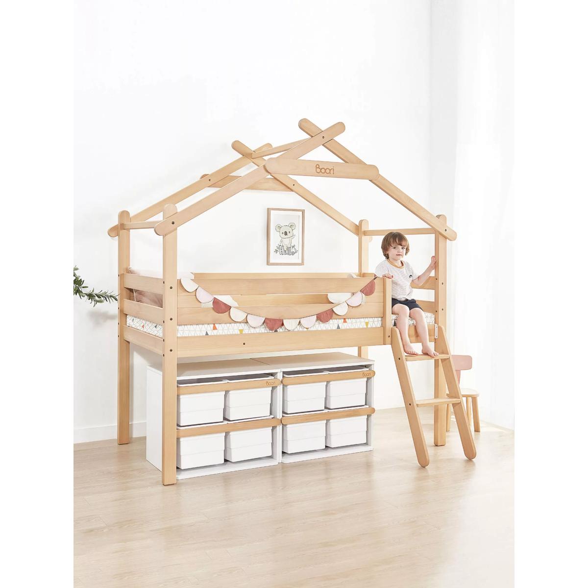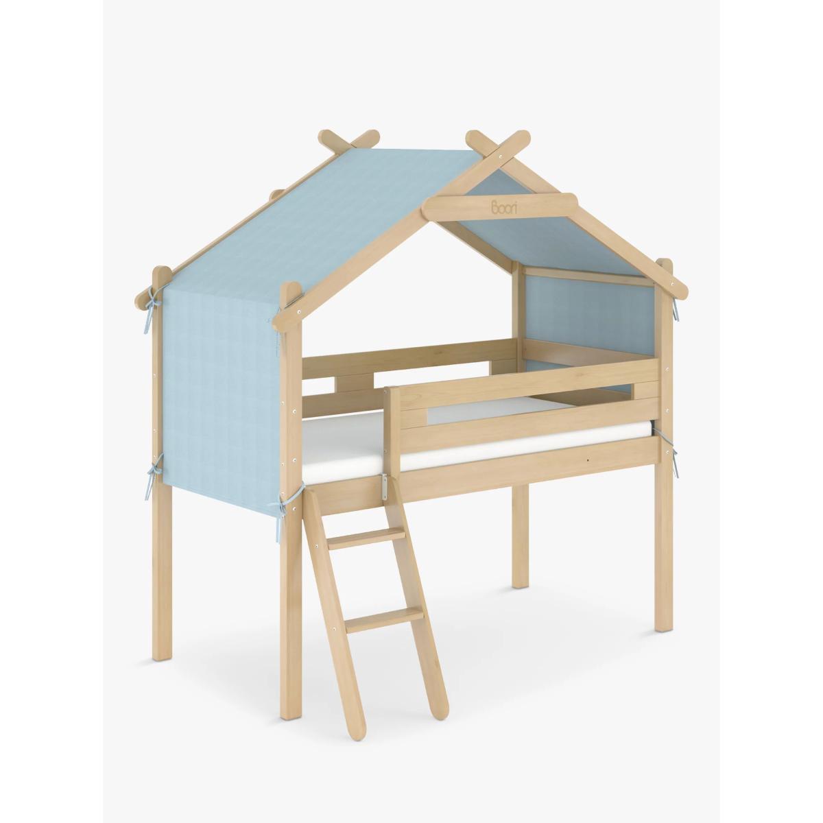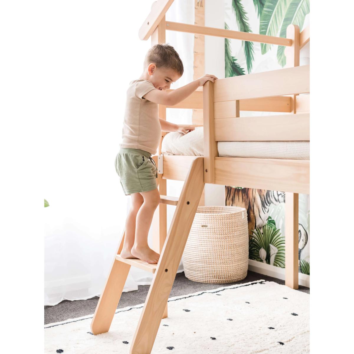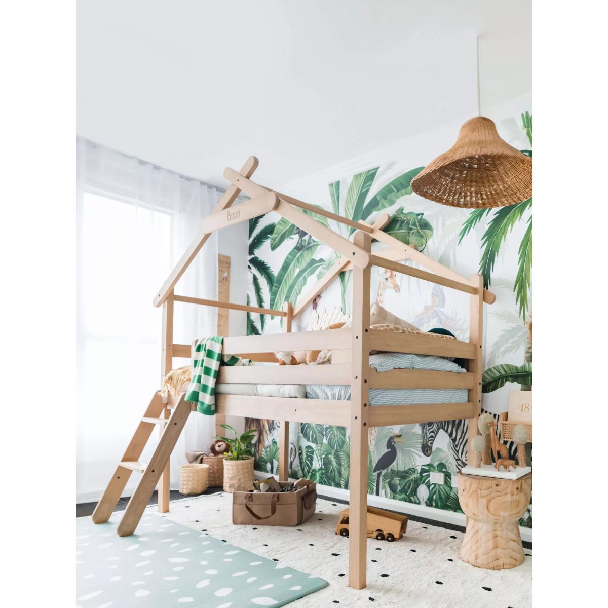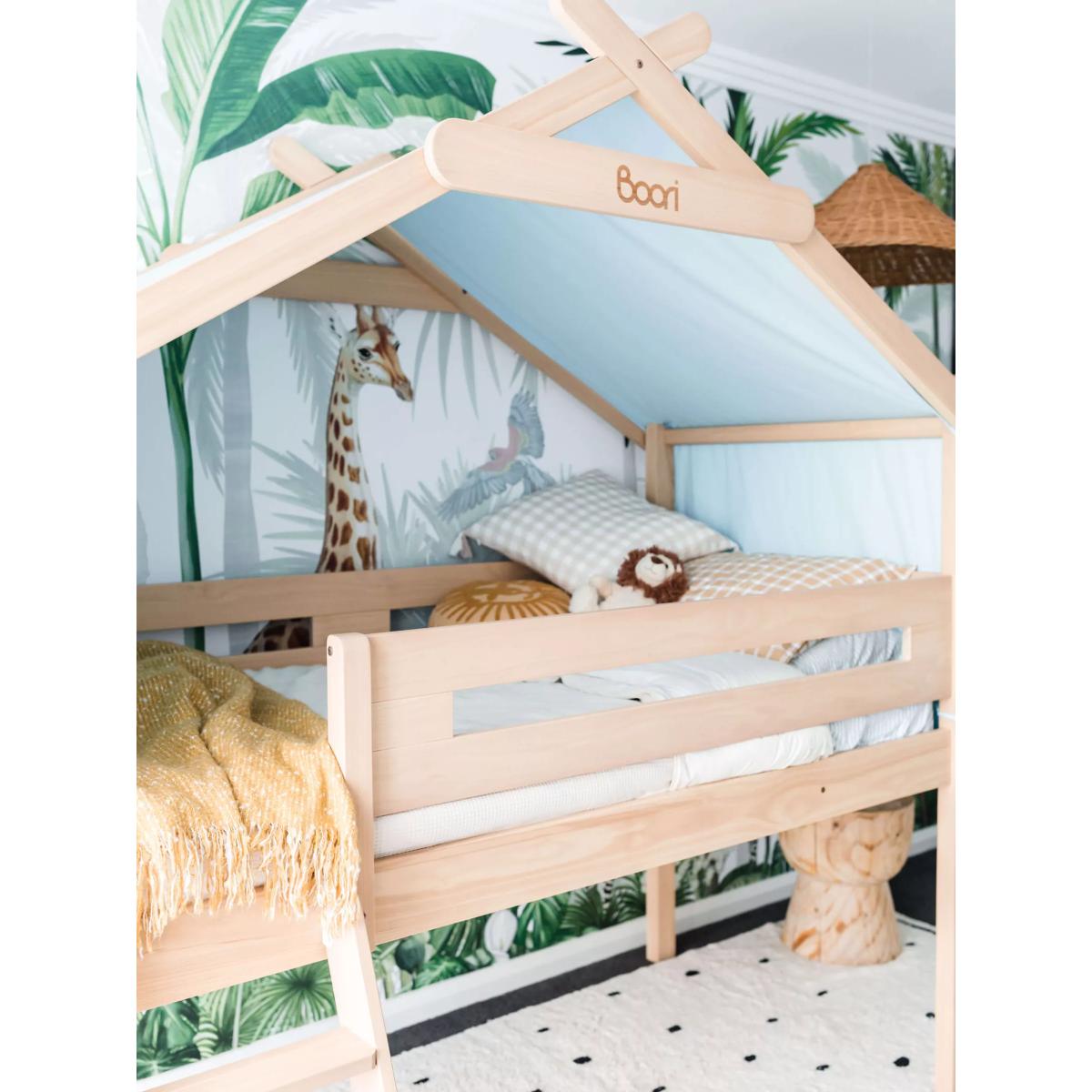 The Boori Forest Teepee Loft Bed is a delightful addition to your child's bedroom that brings an element of fun and magic to their sleep space. Crafted with care, the bed frame is constructed from sustainably sourced Australian/New Zealand pine timber. The bed comes complete with a cotton canopy. The playful canopy, made from 100% cotton canvas, is not only charming but also wear-resistant and breathable, providing a cosy and comfortable retreat for your little one. Suitable for children aged 6+, the Forest Teepee Single Loft Bed is perfect for families needing to be savvy with their storage. The sturdy Tidy Toy Cabinets (sold separately) can easily fit underneath. Good to know