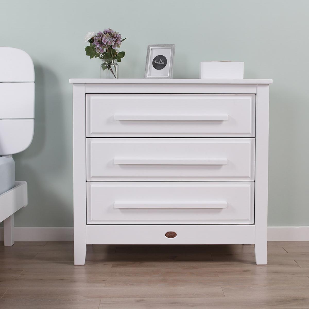 The Linear Chest of Drawers from Boori will be your storage saviour! With 3 deep drawers and finishing in 2 gorgeous neutral tones, whether you have a boy or a girl, either or will suit existing interiors! Store away all their little clothes, cuddly comforts and essentials. Resulting in a mess-free bedroom, hopefully? Once the little darling masters walking and talking they'll be super proud of their storage space, resulting in taking their independence to a whole new level, folding and packing all essentials away neatly! Create the perfect little space full of style and practicality and as it's made entirely from high quality sustainable materials it'll last them for years to come!.