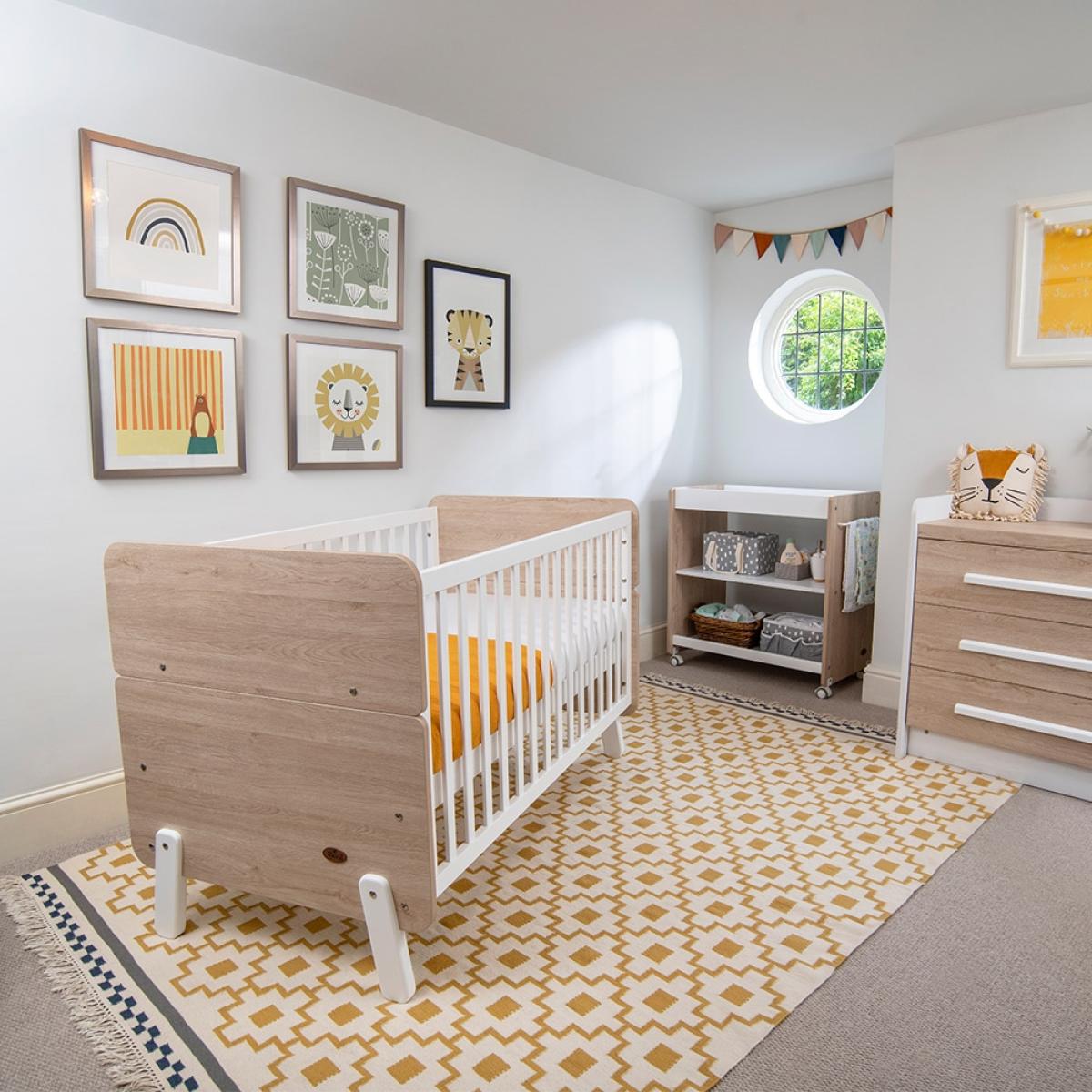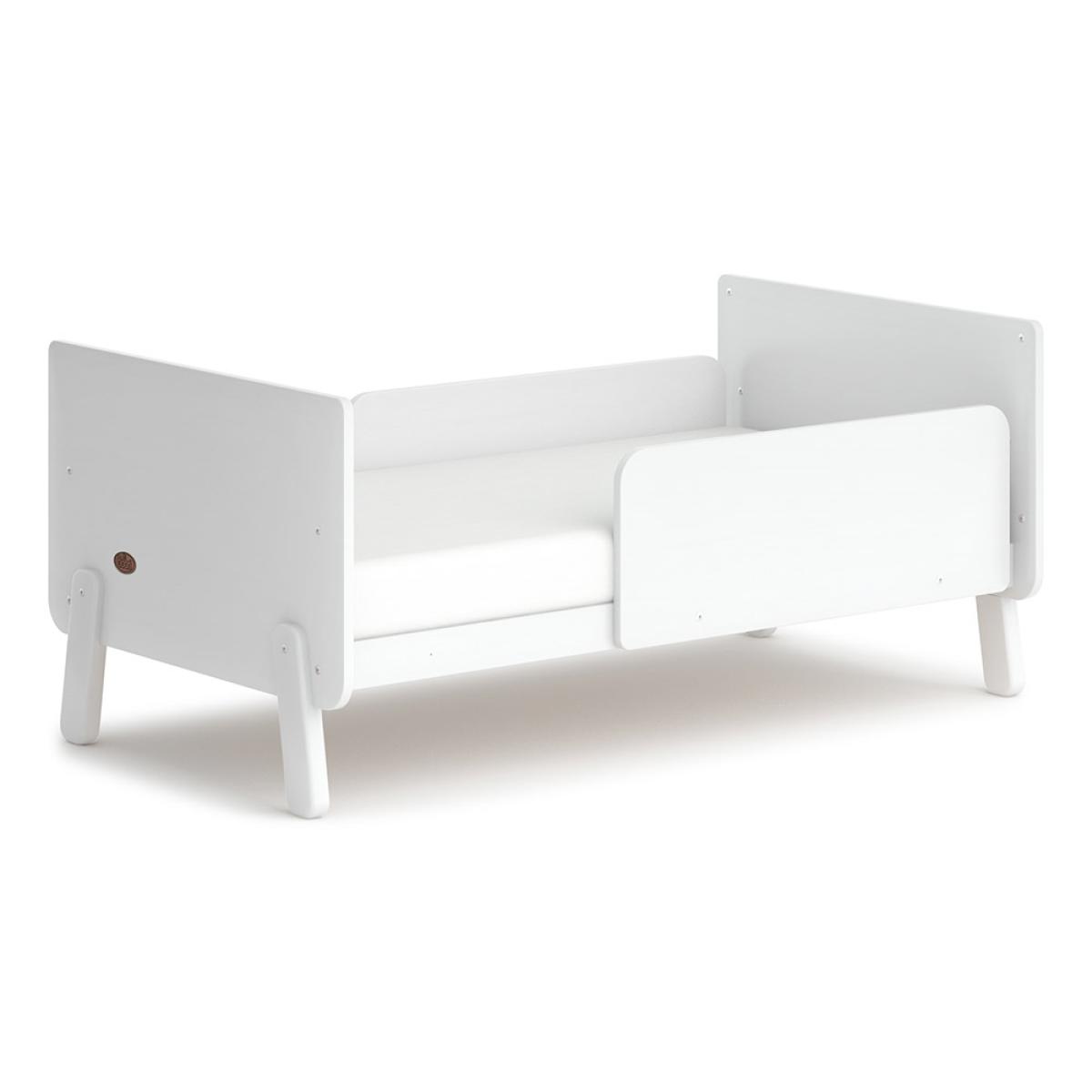 The Boori Natty Cot Bed will be your little one's new special sleepy spot! Made from sustainable materials with a Scandi inspired design, the quality craftsmanship will see your tot through those first important years! Featuring rounded corners and playful angled feet, this cot will suit either boy or girl and any home nursery décor too. Perfectly designed to grow with your child, with 2 height adjustments, simply adjust to suit their needs. Once they've grown, transform the frame again into a toddler bed. Rest assured you'll still be able to keep them safe and secure with the two guarded sides in place. Modern and stylish, pair with matching furniture and accessories to create the perfect little pad for your little one to grow into!.