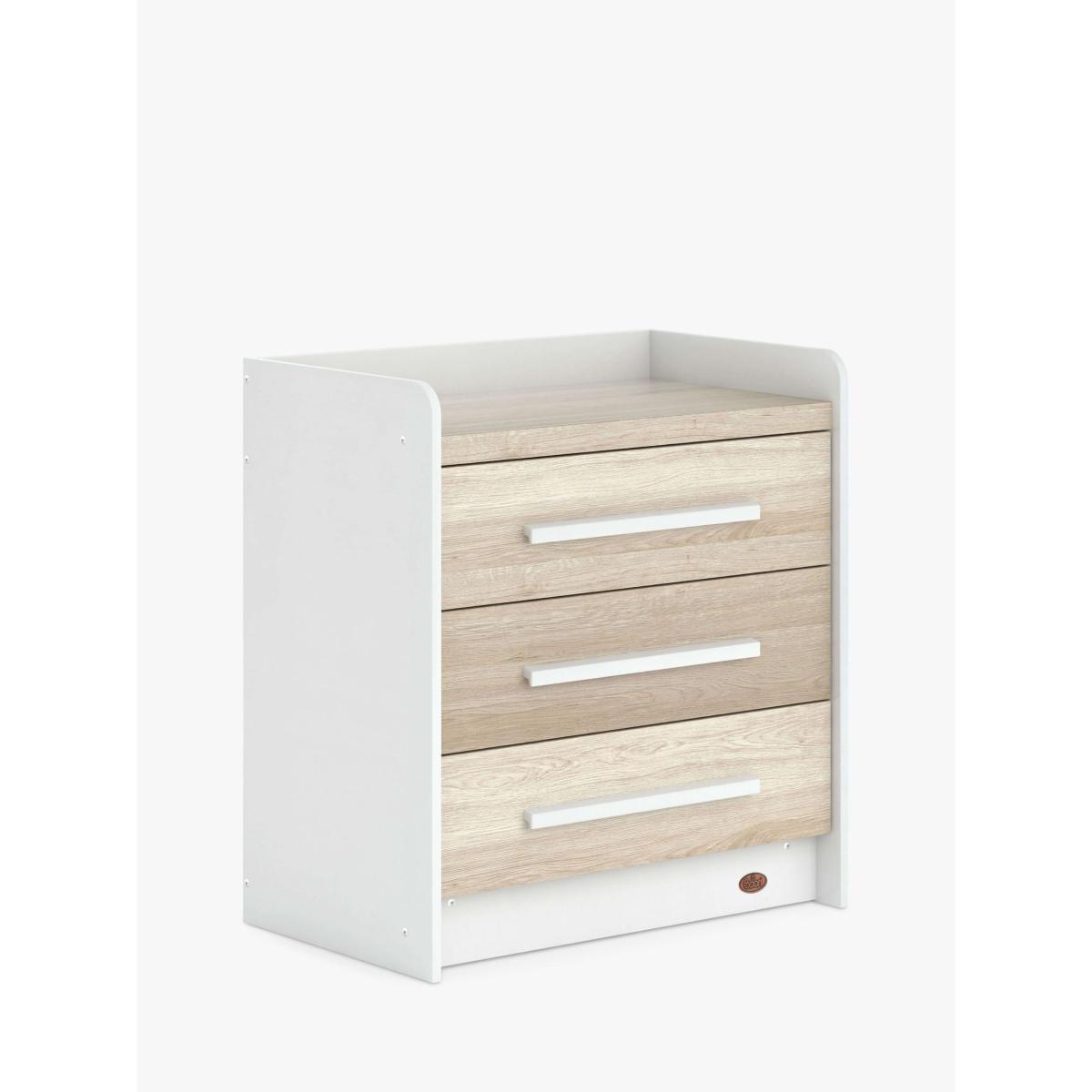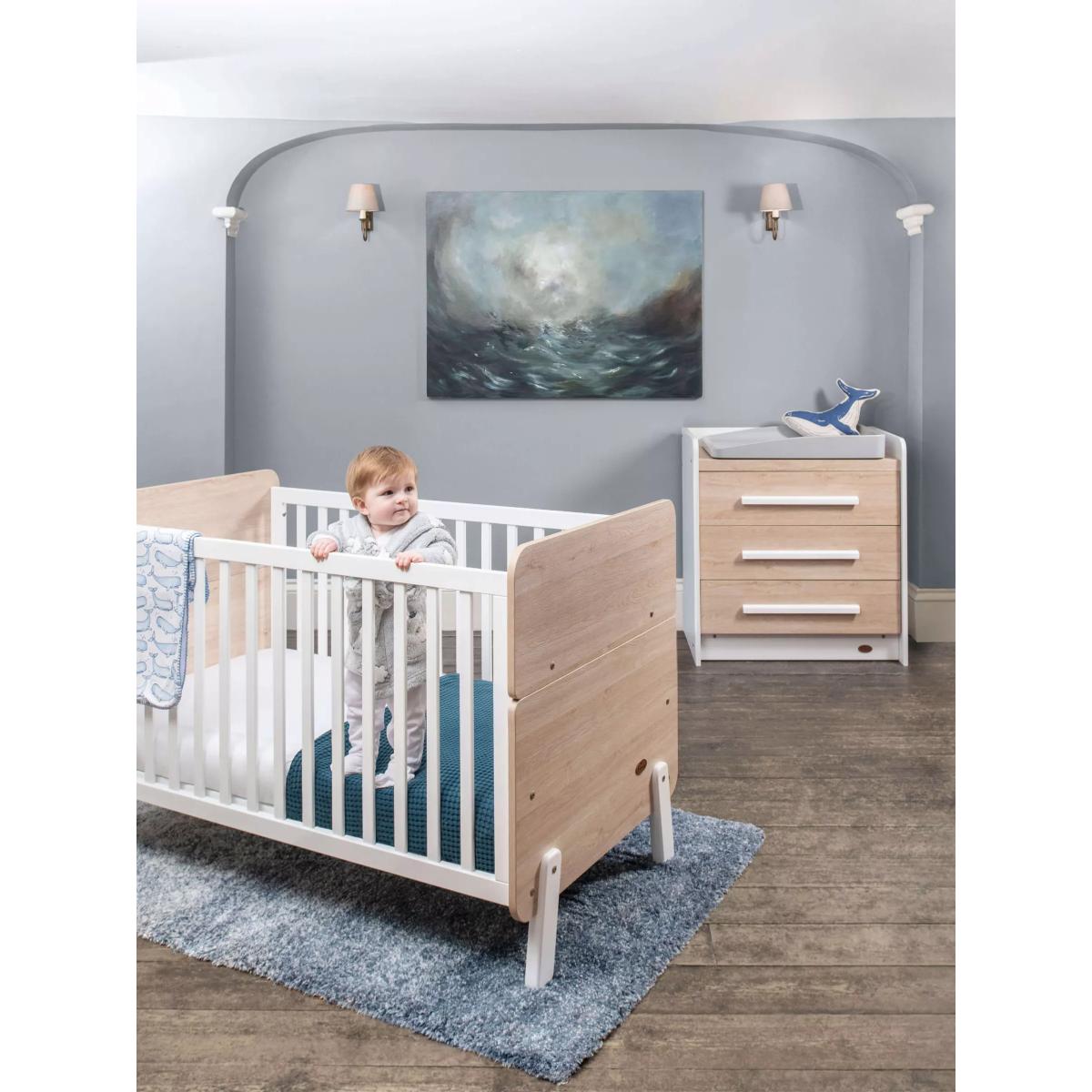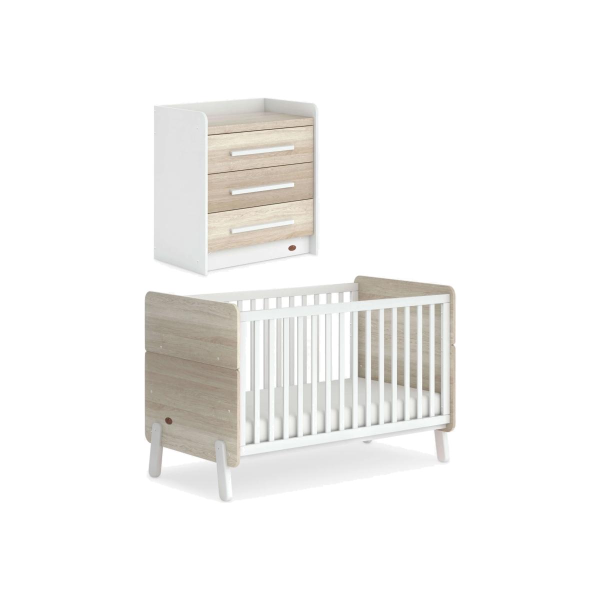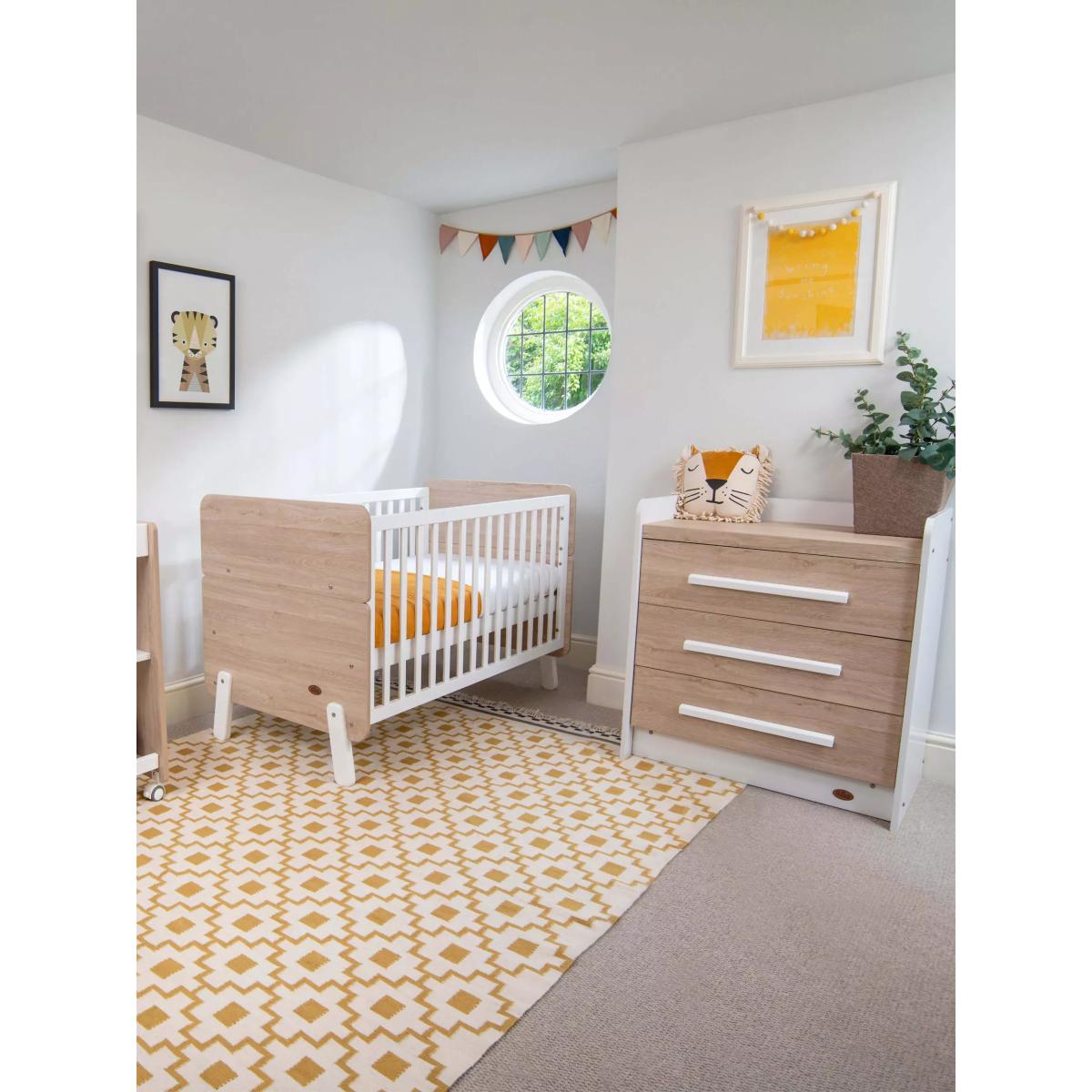 The Boori Natty and Neat collections were created to work in harmony, combining soft colourways and unique angles to bring a fresh, modern look to bedrooms or nurseries. This Natty 2 Piece Furniture Set features the Natty Cot Bed and Neat 3 Drawer Chest which are both designed for the nursery and beyond. The Natty Cot Bed has the ability to transform into a guarded toddler bed with no additional purchase required and the Neat chest of drawers feature plenty of storage space for clothing. Cotbed: This modern, Scandi cot bed has round corners, angled feet and muted two-tone colour palette. The unique paint finishes are nursery-friendly and enhance the natural beauty of the wood's grain. Key Features: Converts from cot to toddler bed suitable from birth to around 5 years with two guarded sides using parts from the cot end panels. No separate purchase of conversion kit required. 2 base heights - the higher base height for easy access to newborns, lower base height for when baby is able to pull themselves up. Crafted from a combination of engineered timber and sustainable solid Australian Araucaria Requires a L132 x W70cm mattress (included) Dresser: The Neat sturdy chest of drawers has a simple, modern design aesthetic. Three soft closing drawers offer plenty of storage and it is made of engineered timber finished in water-based paint.